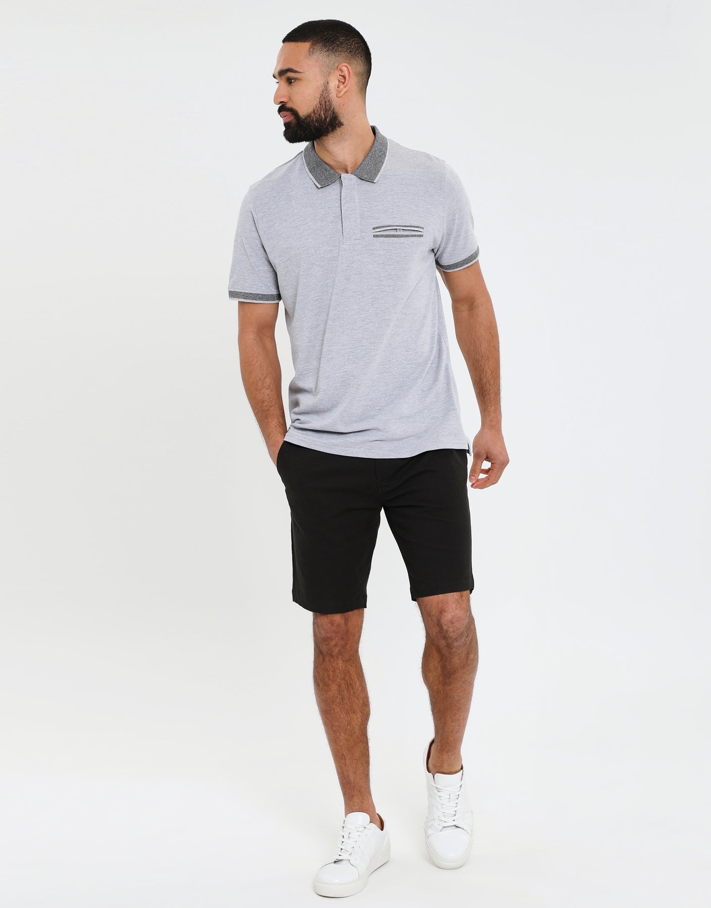 Grey Marl Jetted Pocket Rib Collar Polo Shirt