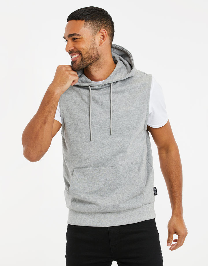 Grey Marl Sleeveless Overhead Hoodie