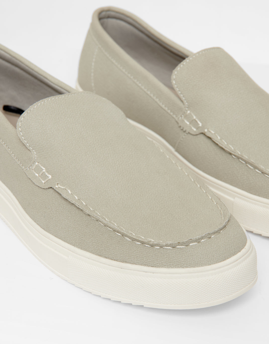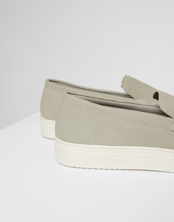 Grey Textured Slip On Loafers
