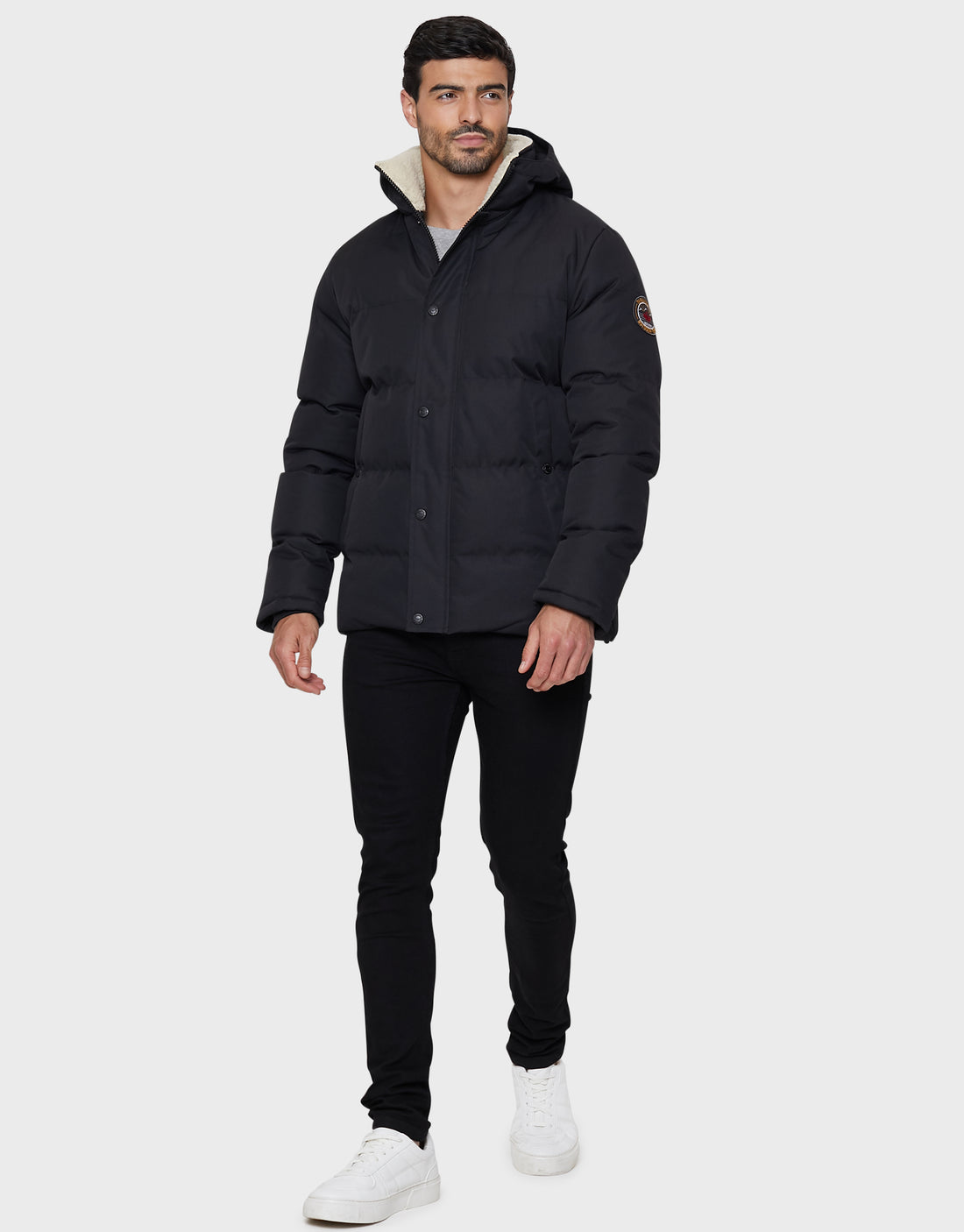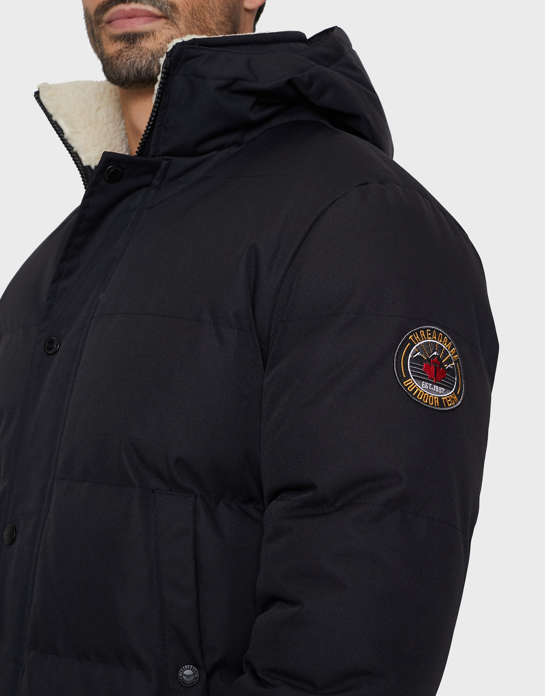 Bring a cool vibe to your outwear with this mid weight padded jacket from Threadbare. Features colourful Threadbare branding to arm, snap fastening large front pockets with fleece lining, internal phone size pocket, and ribbed sleeves. Storm guard with borg inner collar, zip and snap fastening. Other colours and style available.