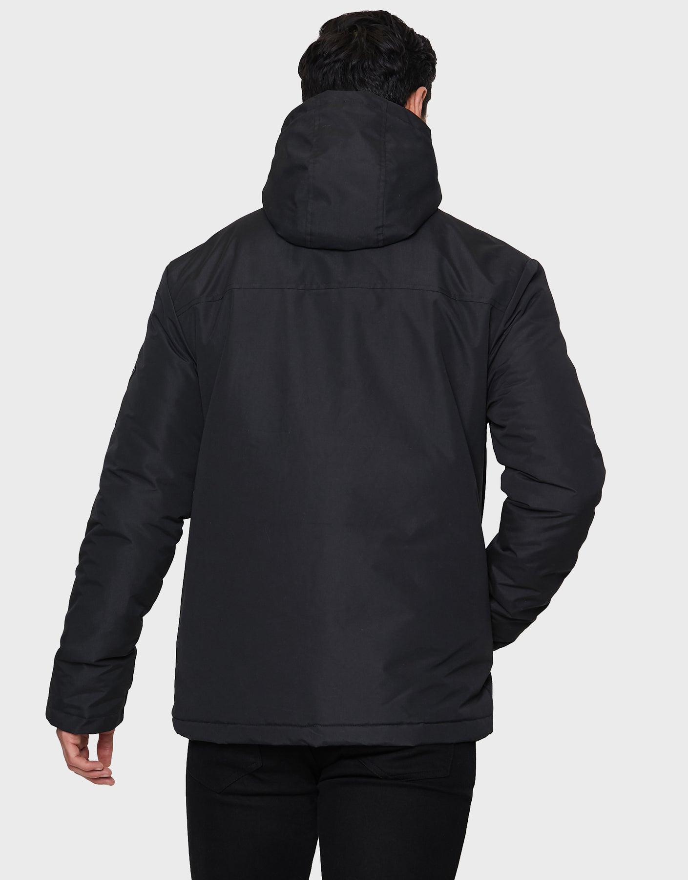 Features Threadbare branding to arm, snap fastening front pockets with fleece lining, one zip fastening chest pocket, and one internal phone sized pocket, ribbed funnel neck with zip fastening, panel detail to lower sleeve with ribbed internal cuff.