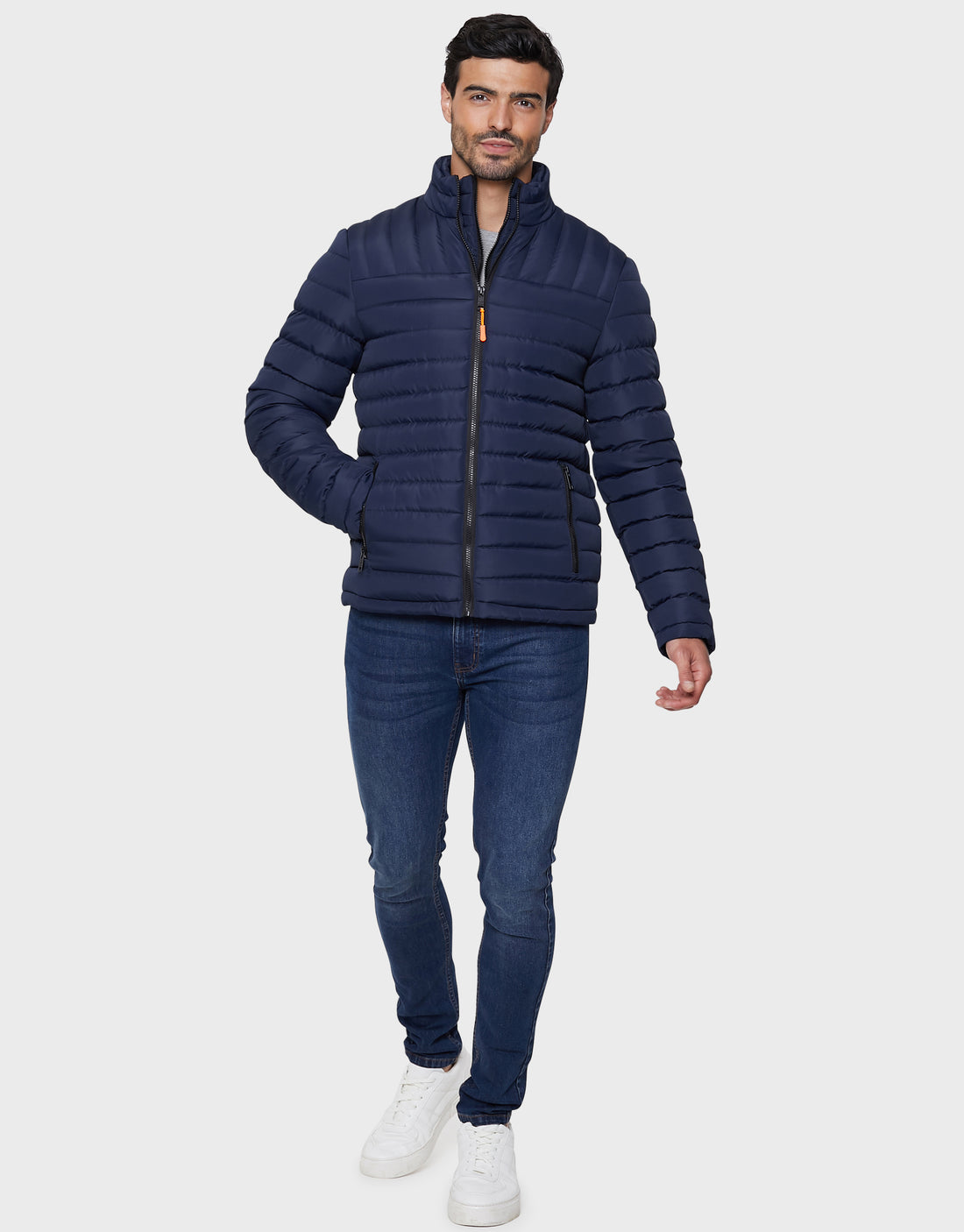 Navy Mock Layer Puffer Jacket