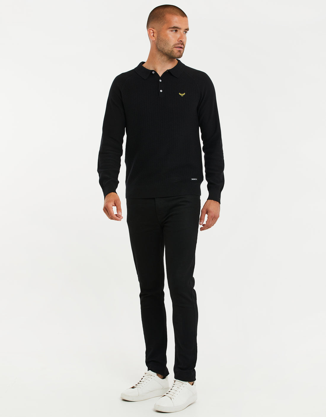 With a polo neck style collar that buttons up, this jumper has a textured knit on the front panel, and has ribbed cuffs and hem to keep you snug.