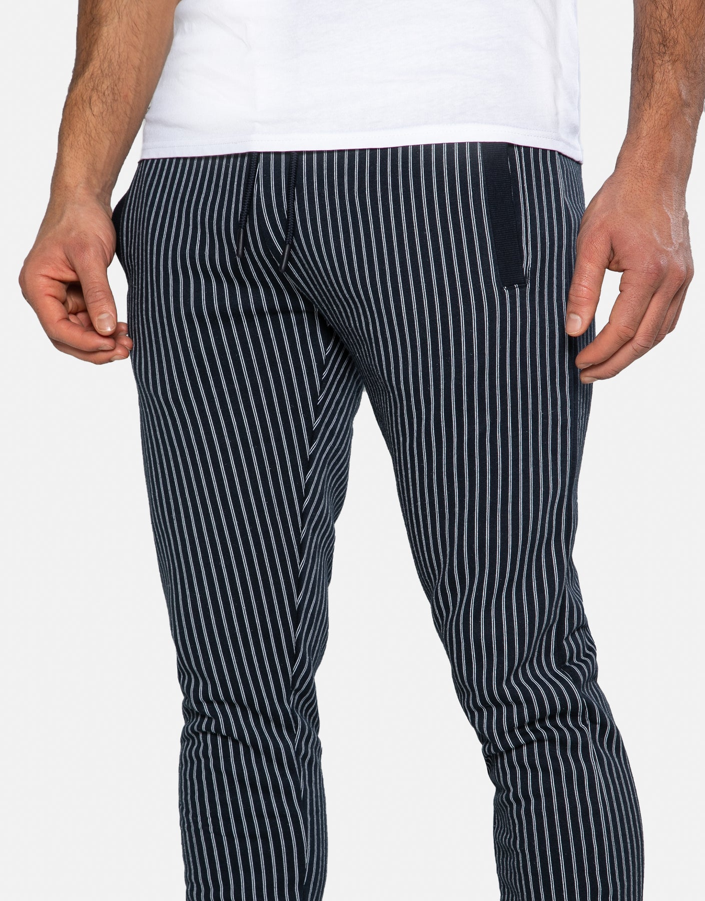 Add some style to your casual wardrobe with these slim fit, pinstripe joggers from Threadbare. They feature a ribbed elasticated waist band with a drawstring, elasticated cuffs and side zip pockets. Made in a cotton blend fabric to ensure a really comfortable feel. Also available in shorts.