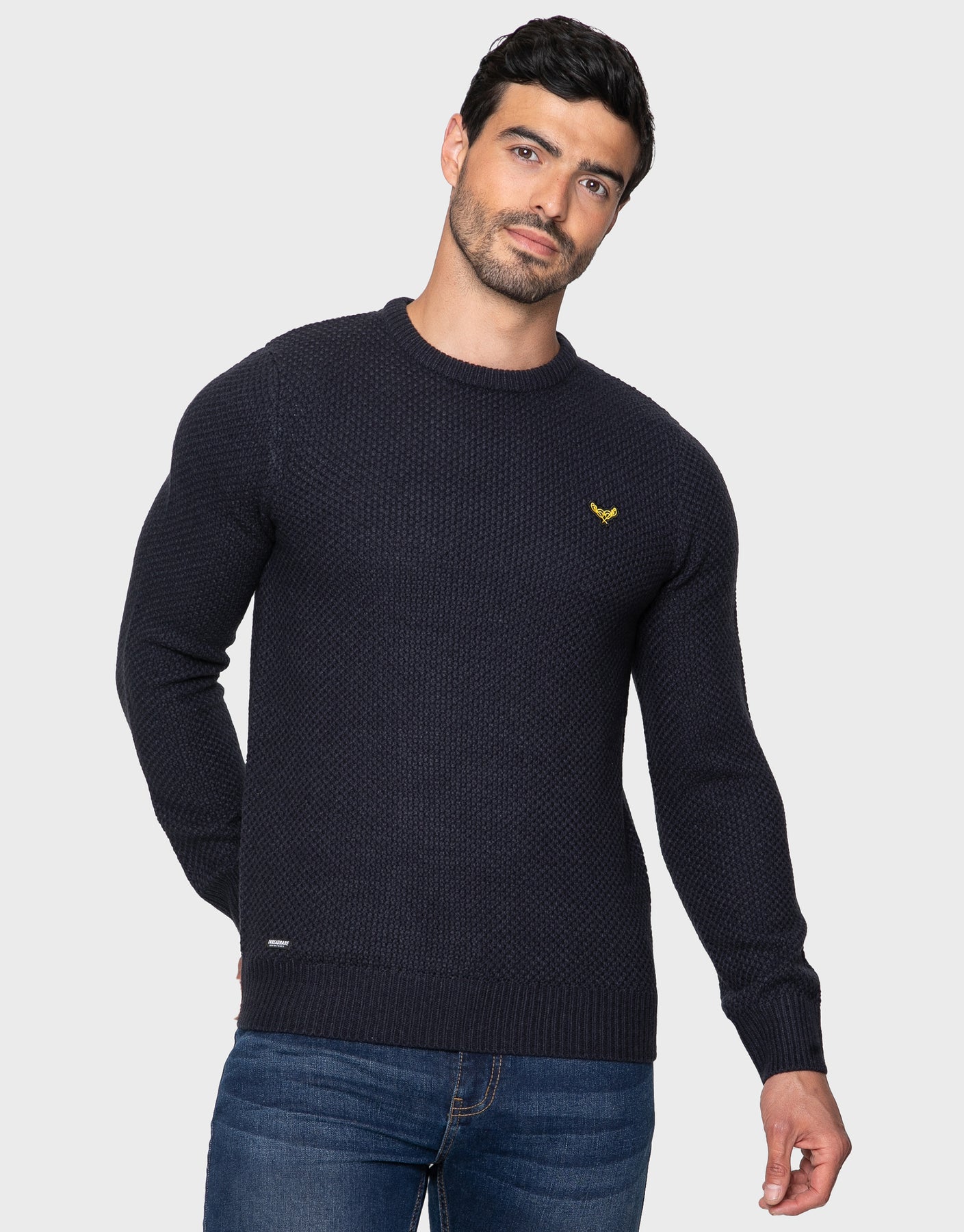 Features ribbed crew neck, cuff and hem, classic Threadbare chest branding, and made from soft acrylic and wool bland fabric.