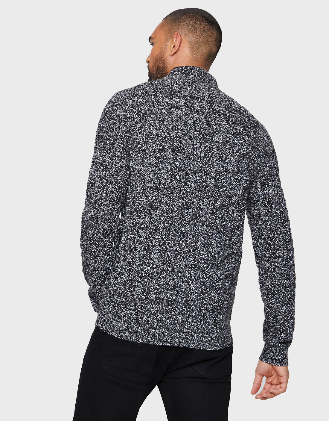 In a cable knit and sporting a stylish quarter zip, this knit is a simple basic that will transform your wardrobe. With a turtleneck collar, the ribbed cuffs and hem will keep you snug. Finished with our signature Threadbare logo embroidered in on the chest.