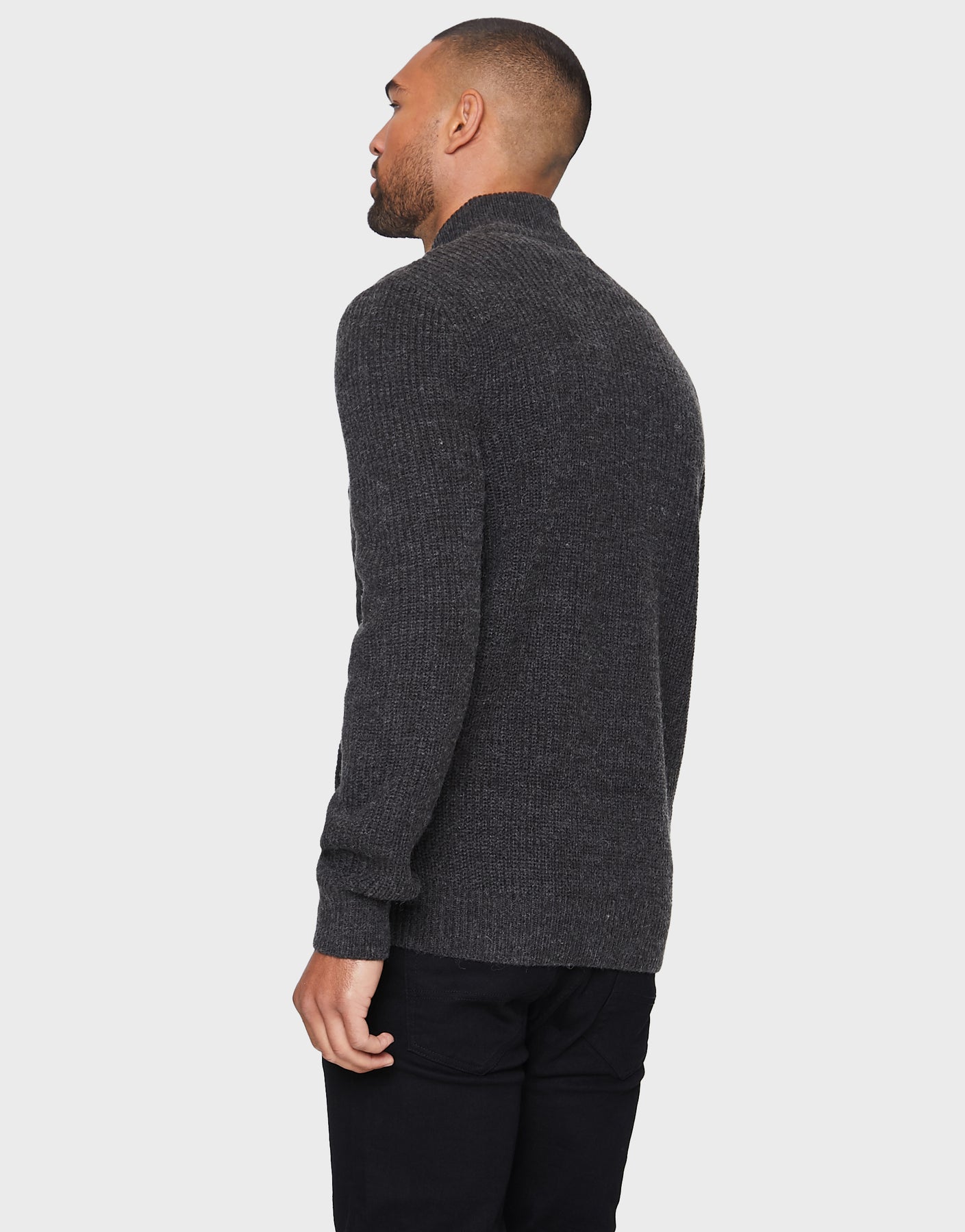 With a ribbed funnel neck style collar, this cardigan is a simple classic that will transform your everyday wardrobe. Cut in a regular fit, this knitted cardigan is both cable knit and half-cardigan stitch making it a true essential.