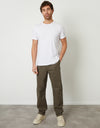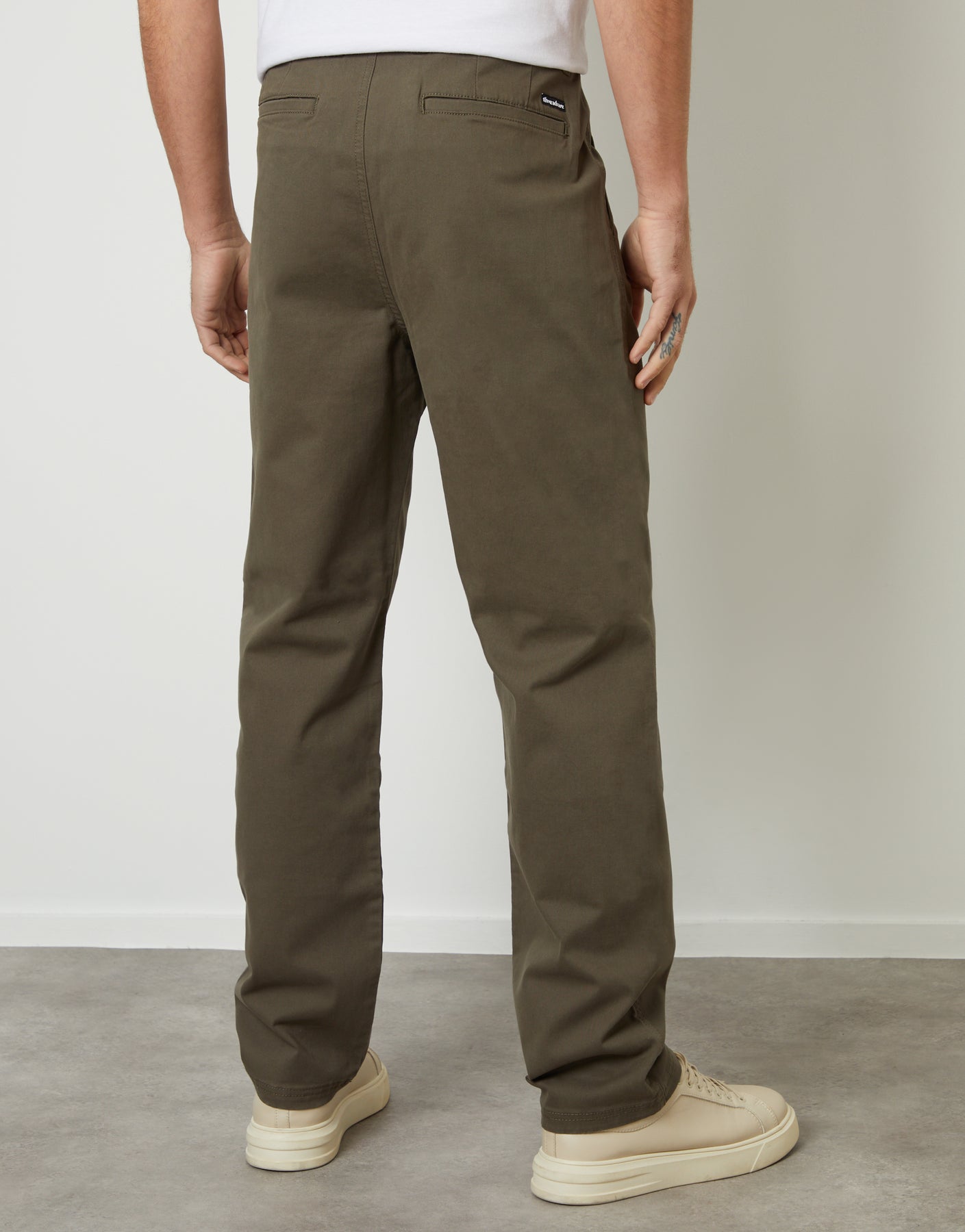 Cut in a straight fit, our chino trousers have belt loops, a metal zip fly and mock horn button to close. Made from a stretch material making them easy to wear, these trousers have two pleats down the front. Complete with two back pockets, two side pockets pockets and a coin pocket.