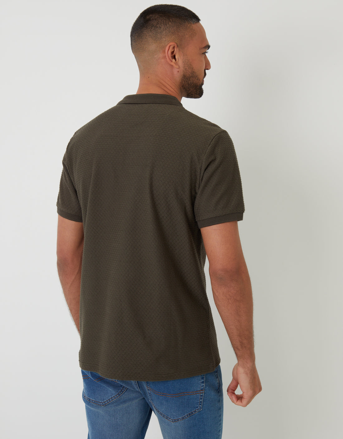 Crafted from a textured cotton jersey fabric, this short sleeve polo shirt features a rib textured jacquard collar and cuffs, a concealed quarter zip collar, and is finished with a branded metal tab above the hem.