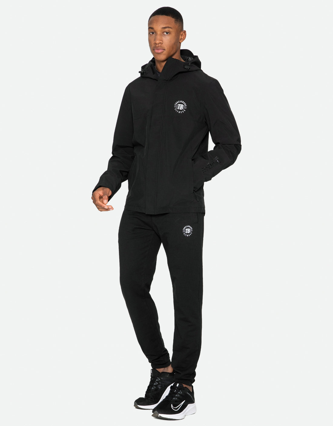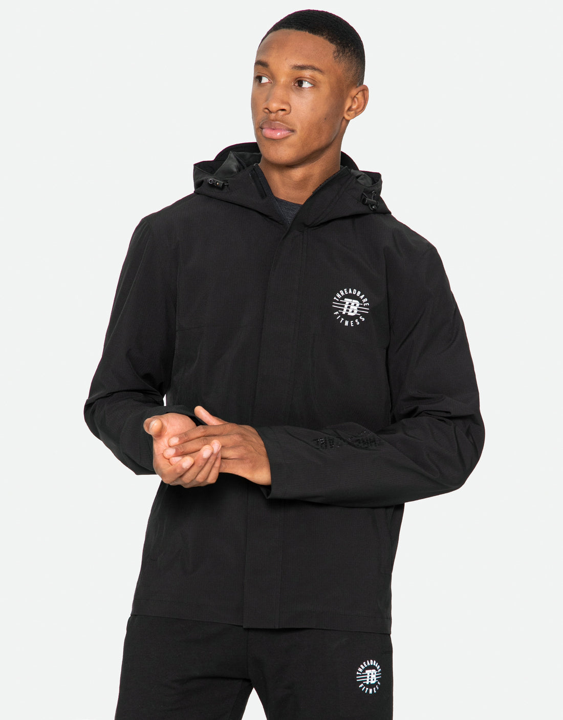 Keep warm and dry with this lightweight, zip and velcro fastening hooded jacket from Threadbare. It features a hood with bungee cord, ribbed elasticated cuffs, two zip fastening front pockets and one internal velcro fastening pocket. Finished with reflective Threadbare Fitness logo on the chest and shiny rubber Threadbare Fitness branding on the arm.