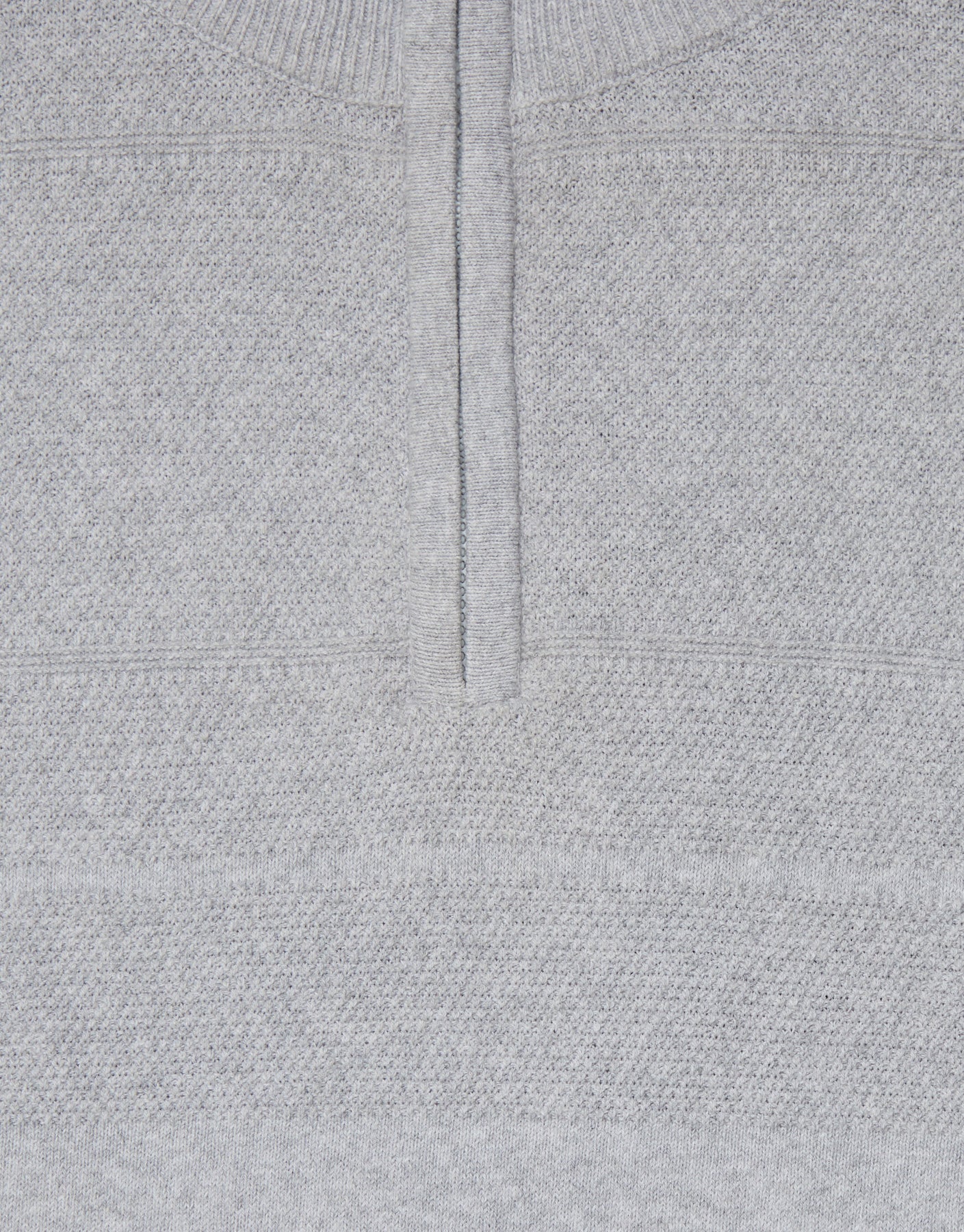 Light Grey Marl Textured Stripe Detail Quarter Zip Jumper