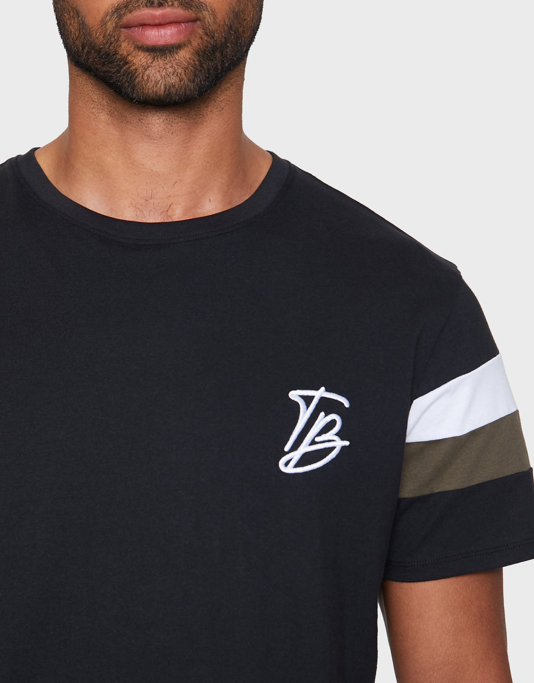 Features short sleeves, colourblock stripe detail in khaki and white, crew neck, small initials Threadbare script chest embroidery, and made from 100% cotton. Pant has two pockets, elasticated waistband with drawcord, elasticated cuffs, matching Threadbare initials embroidery and are made from soft cotton fabric.
