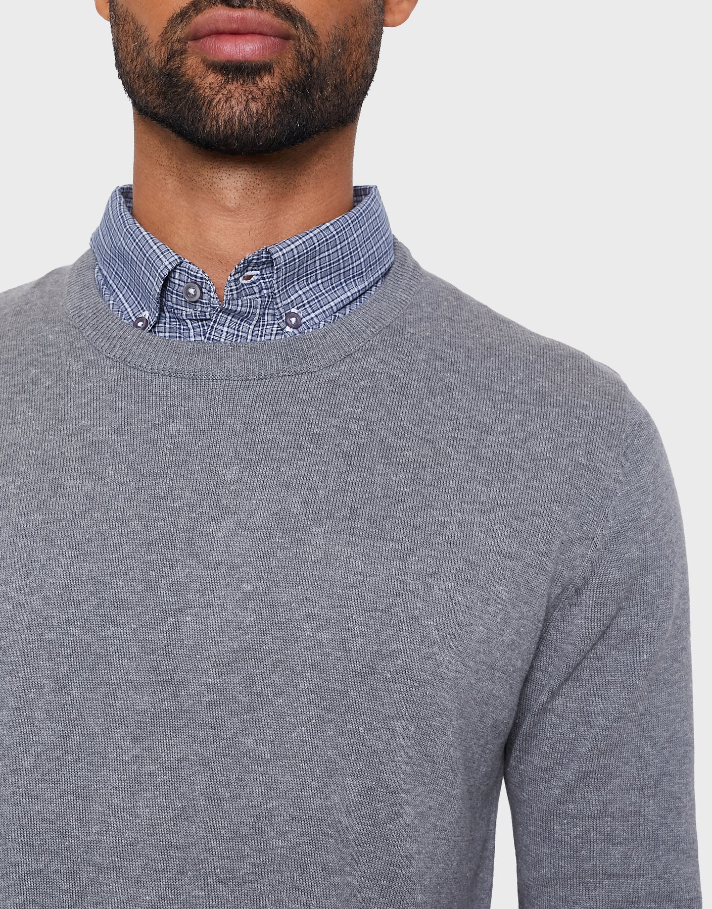 Channel a smart casual look with this mock shirt collar crew neck jumper in grey marl from Threadbare.