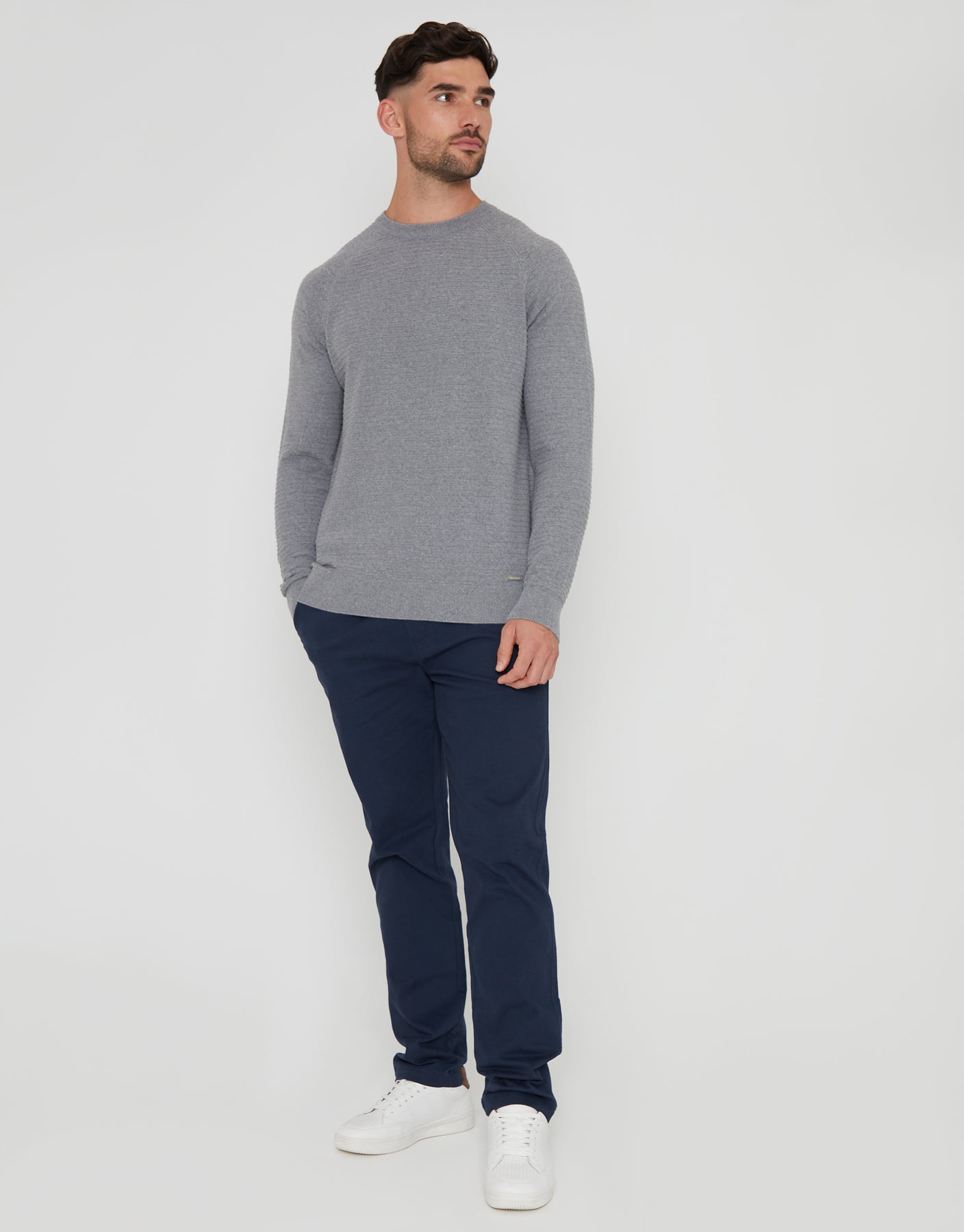 Mid Grey Marl Textured Stripe Knitted Crew Neck Jumper
