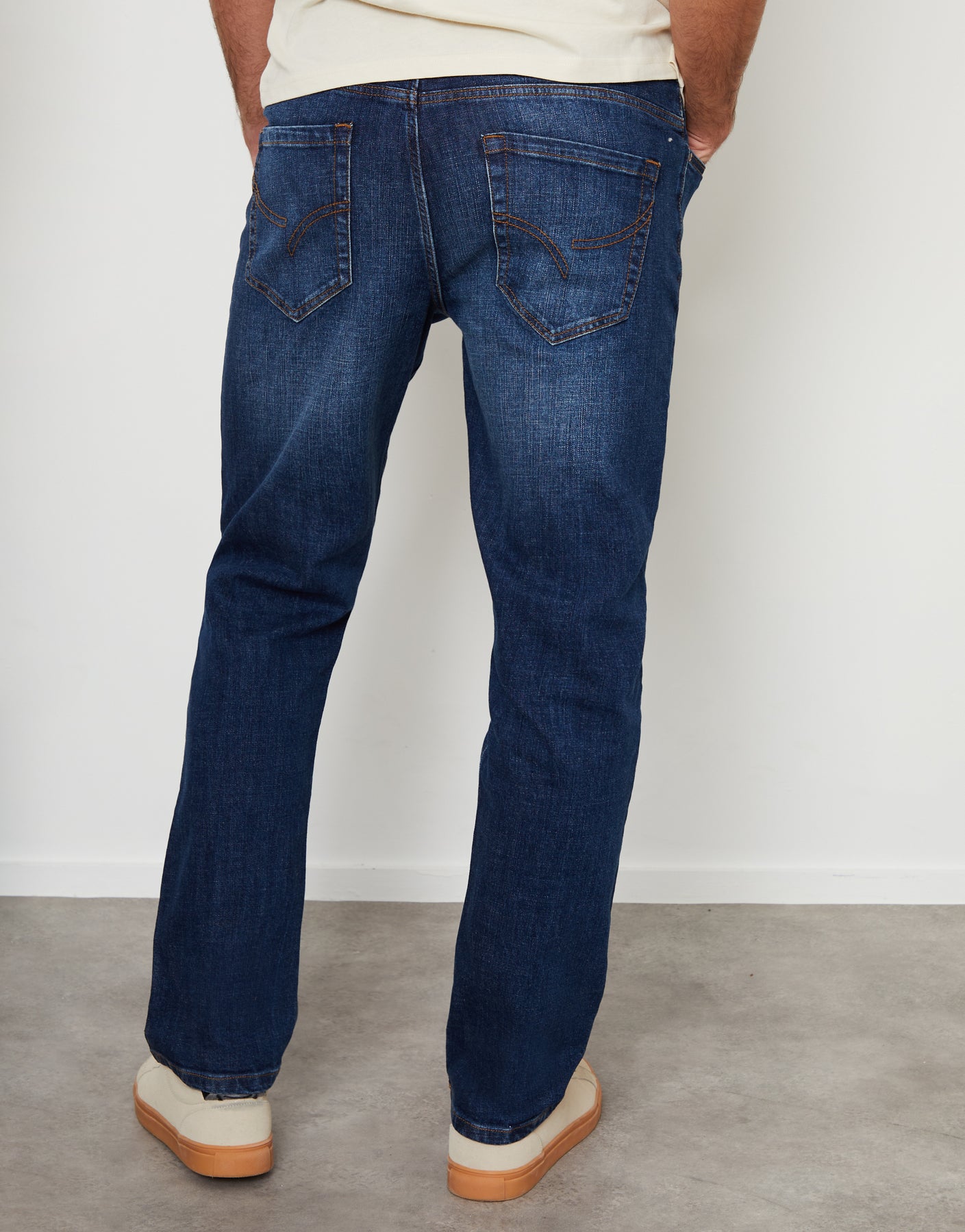 Mid Wash Stretch Heritage Straight Leg Jeans