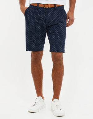 With an all over geometric print, tan plated belt, and Threadbare embroidery to the hem, these shorts are designed with a stretch fabric to keep you comfortable in the warmer months.