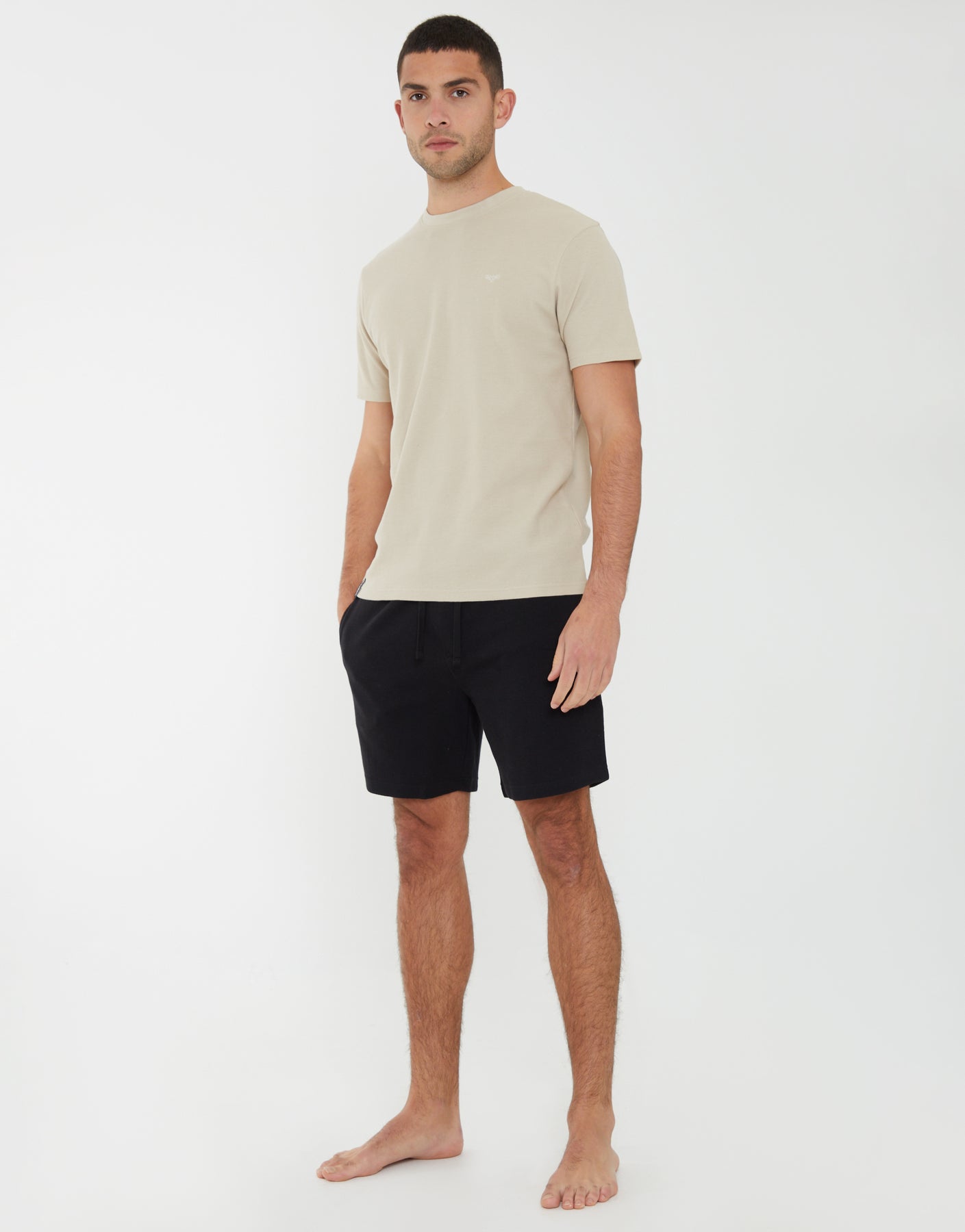 These two piece lounge sets have a comfortable waffle t-shirt with short set-in sleeves, crew, and signature Threadbare embroidery on the chest. The matching textured jogger-style cotton shorts have a ribbed elasticated waistband with drawcords and two side pockets.