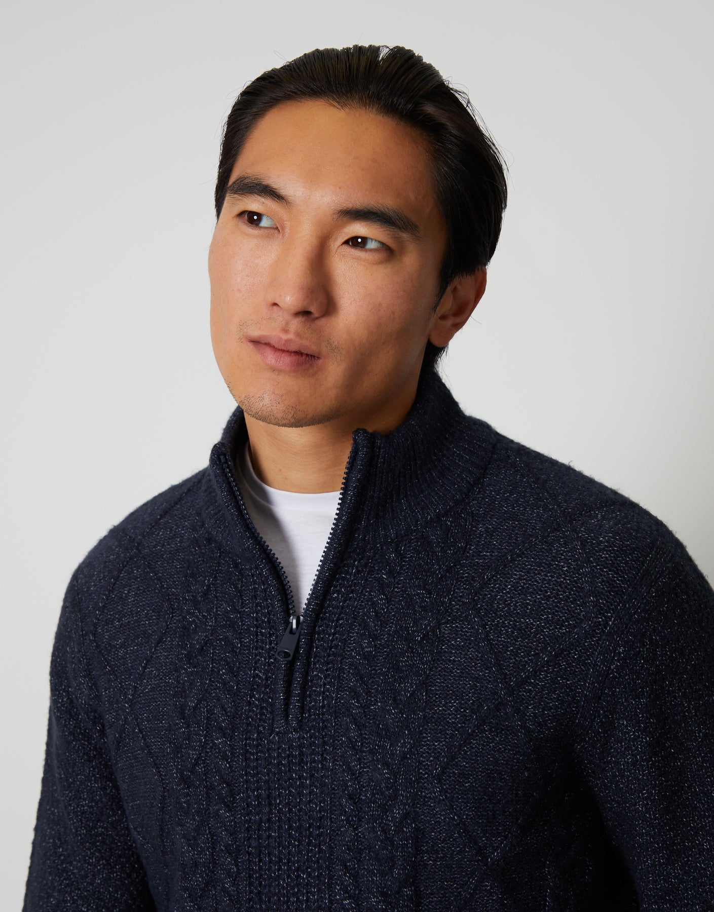 Uplevel your knitwear staples with our Threadbare cable knit quarter zip turtleneck jumper.