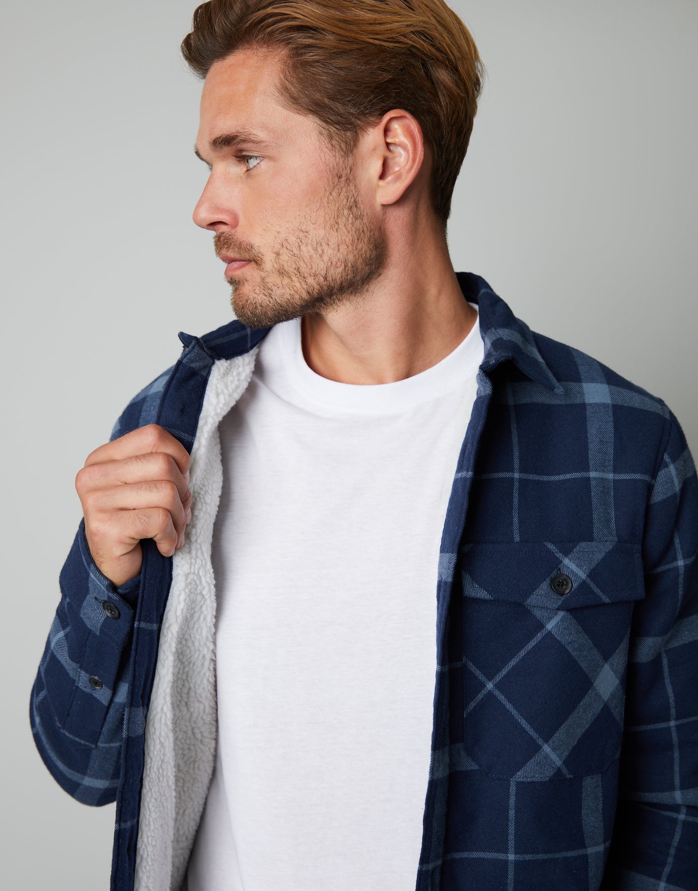 Navy Check Borg Lined Long Sleeve Shirt