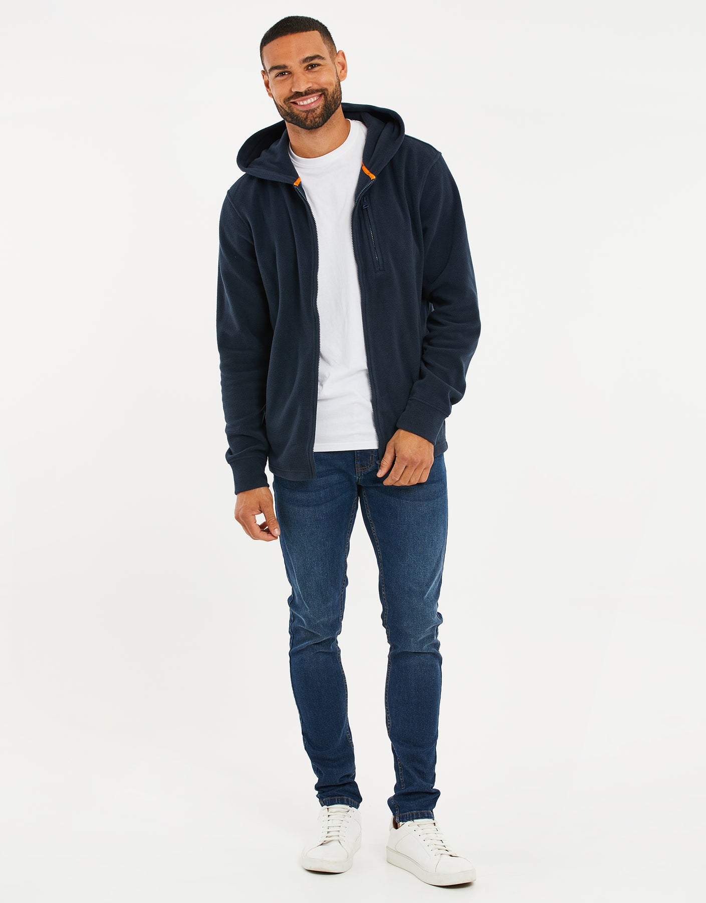 Whether you're after comfort in winter or something practical for the outdoors, kit yourself out with this navy zip-through hooded fleece from our Threadbare Outdoors range.