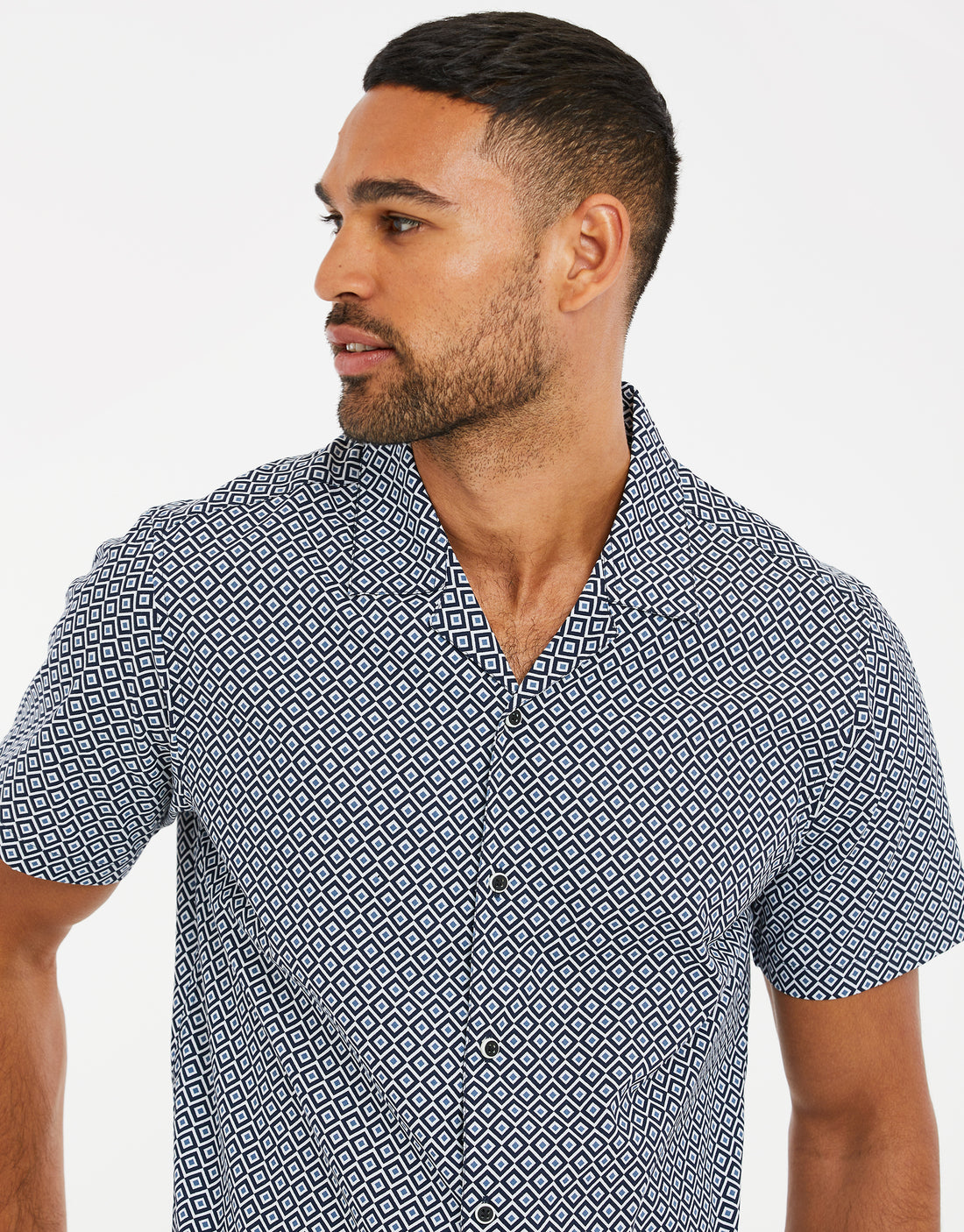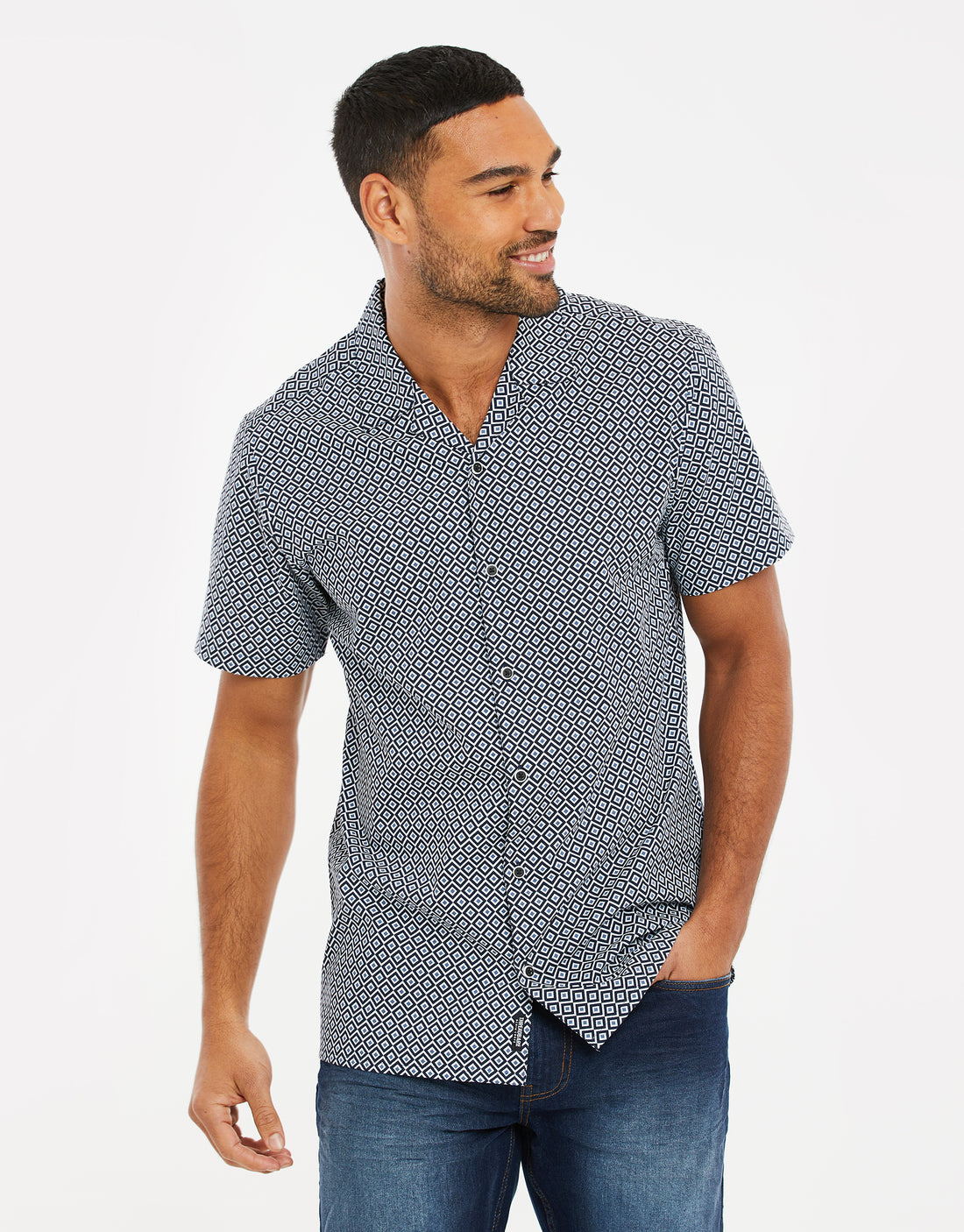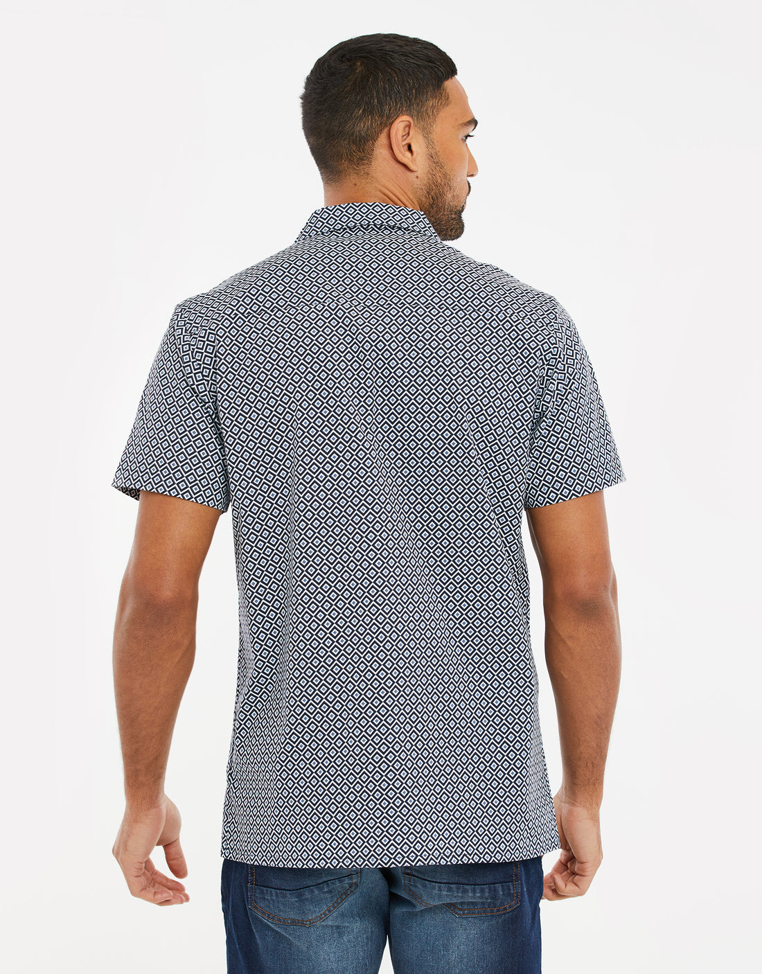 Navy Geo Print Short Sleeve Shirt