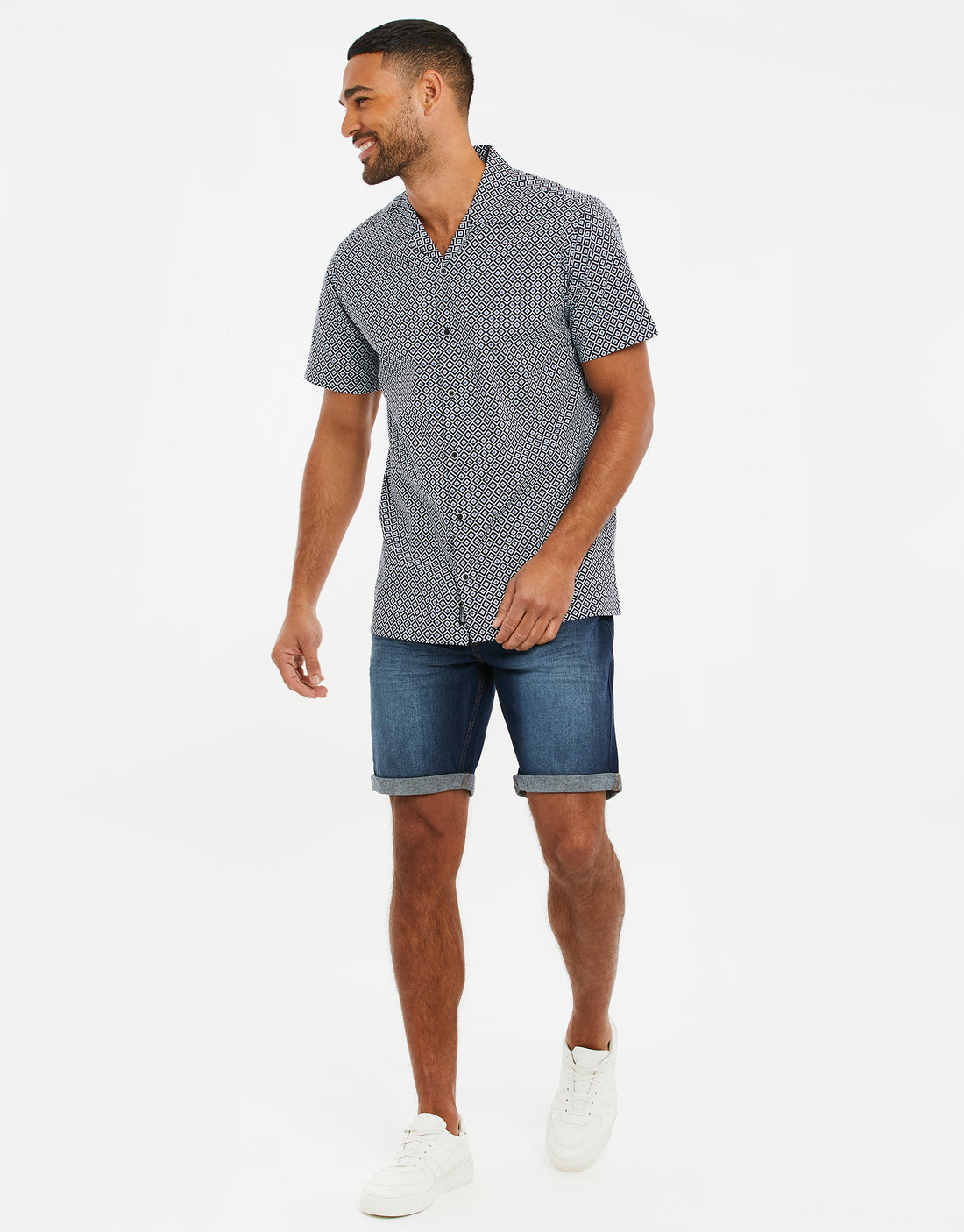 This geometric print lightweight cotton shirt is the ideal shirt for those warmer evenings.