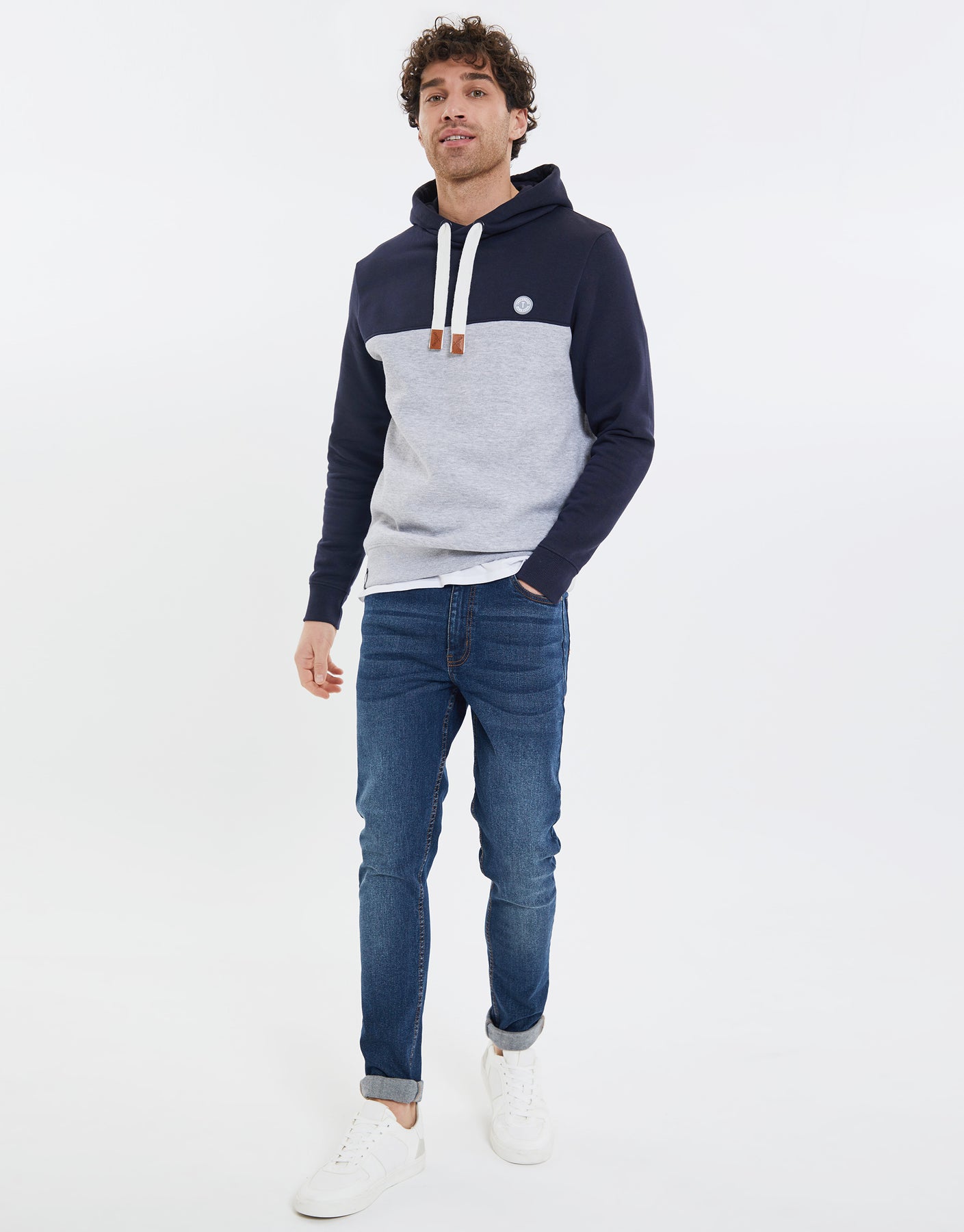 With a hood and drawcords, this casual colourblock panel hoodie has our Threadbare woven badge on the chest and left arm for that branded feel.