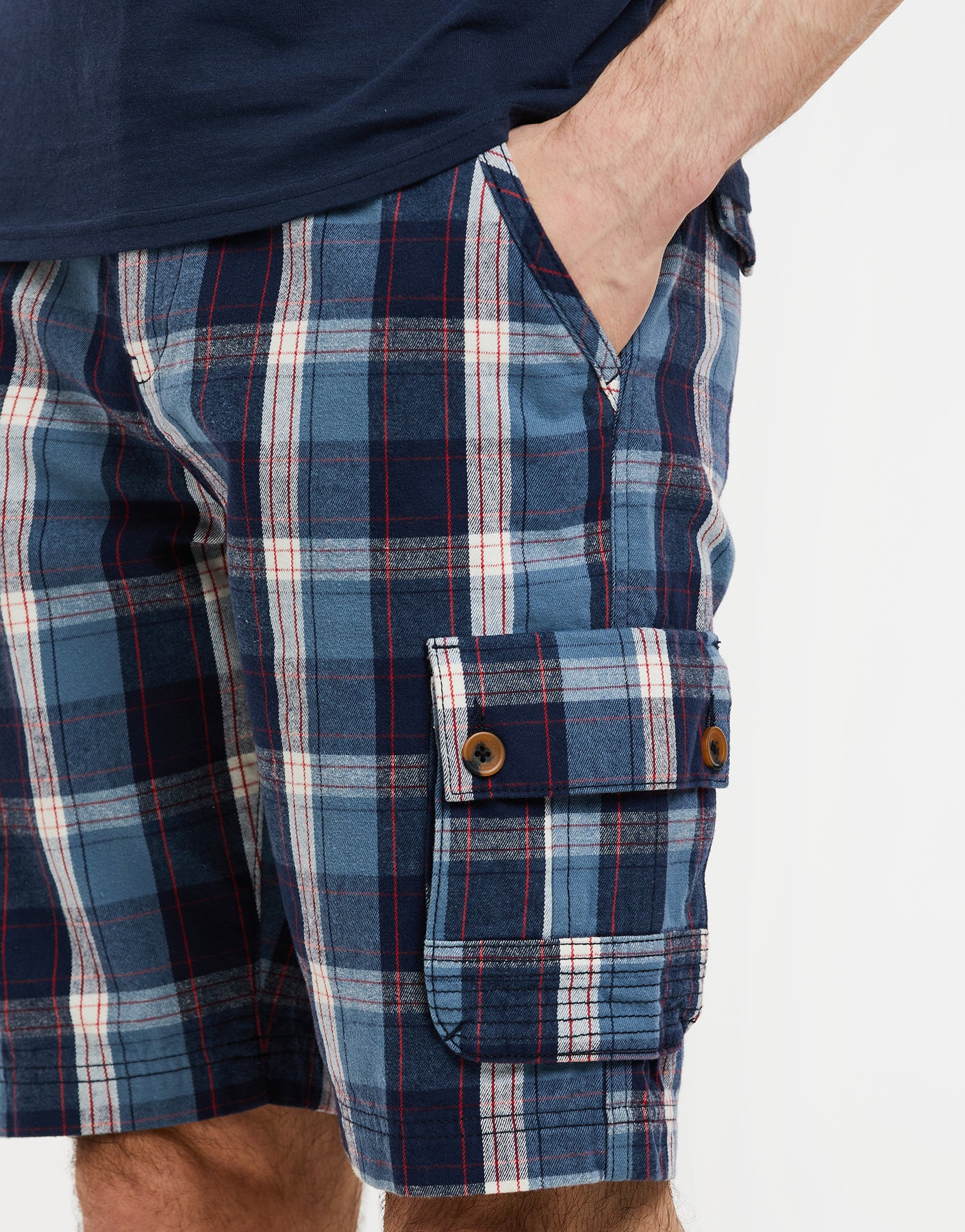 These Threadbare check cargo shorts are designed with a button fastening and a zip up fly for a classic look.