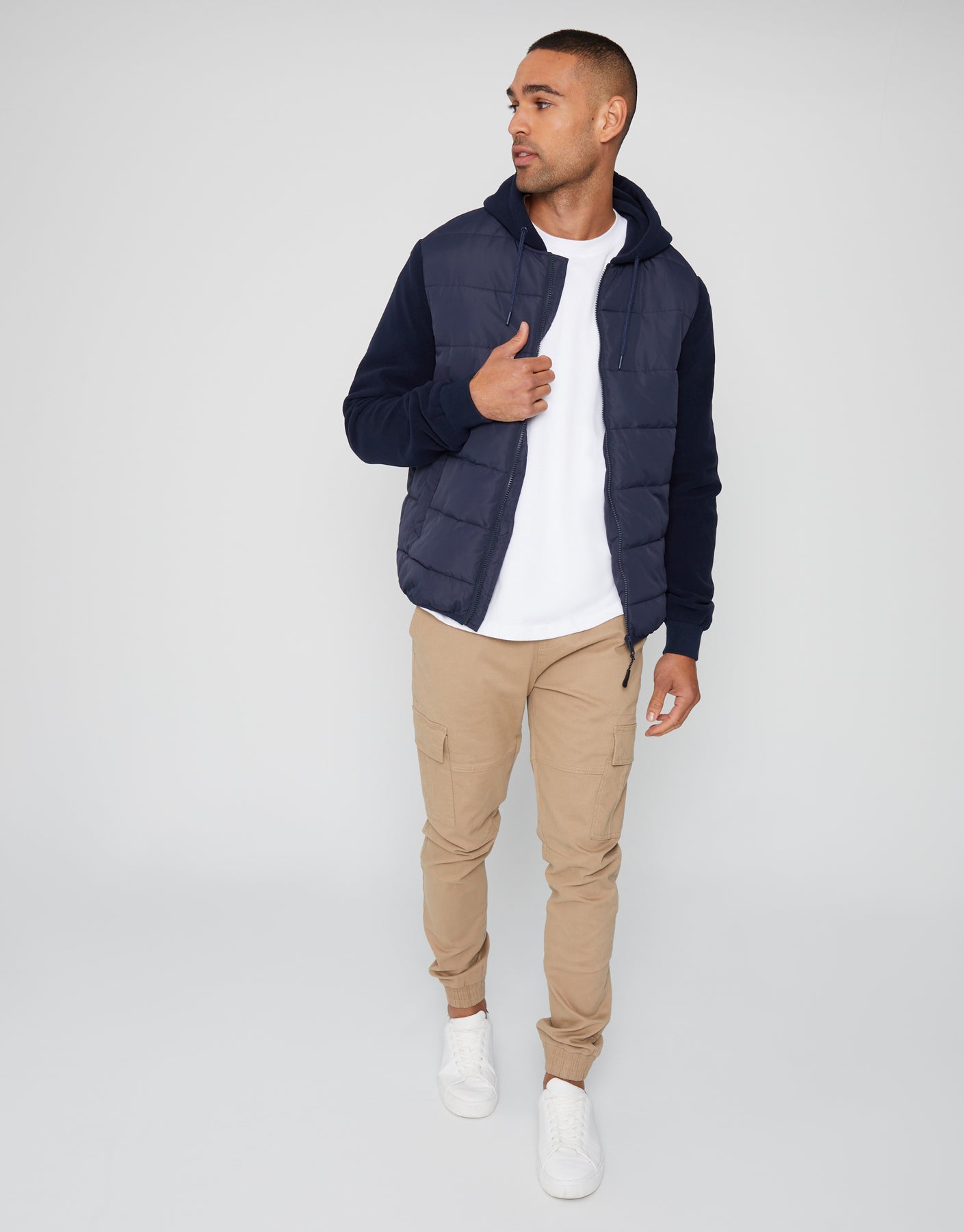 Complete your essentials with this hybrid padded jacket with contrast hood and sleeves from Threadbare.
