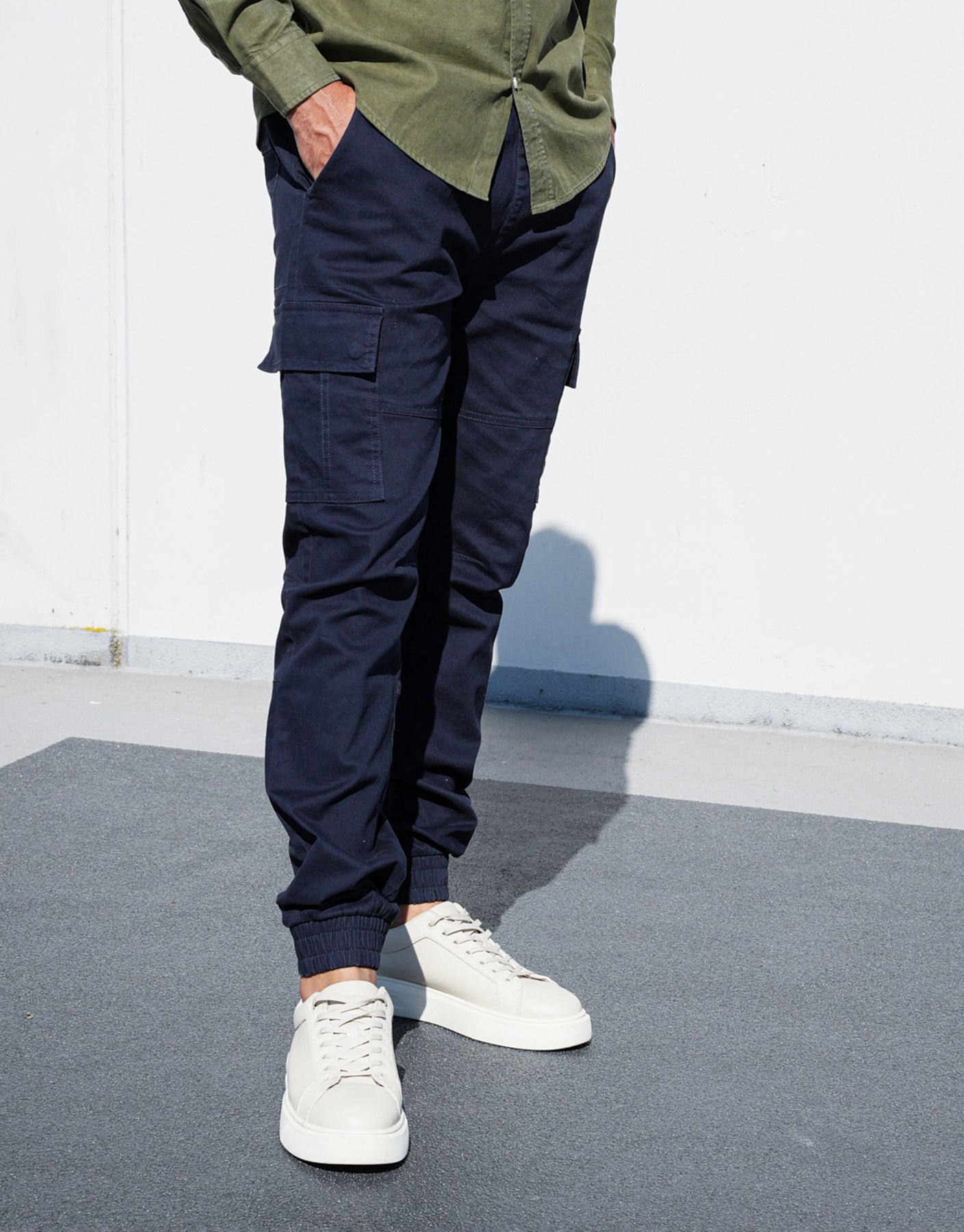 Cut in a slim fit, these jogger like trousers are the answer if you're after an alternative pair of trousers to complete your collection. With a cargo pocket on each leg and front and back pockets, you're fully kitted out. An elasticated waistband with zip fly and drawcords finish this easy-to-style pair.