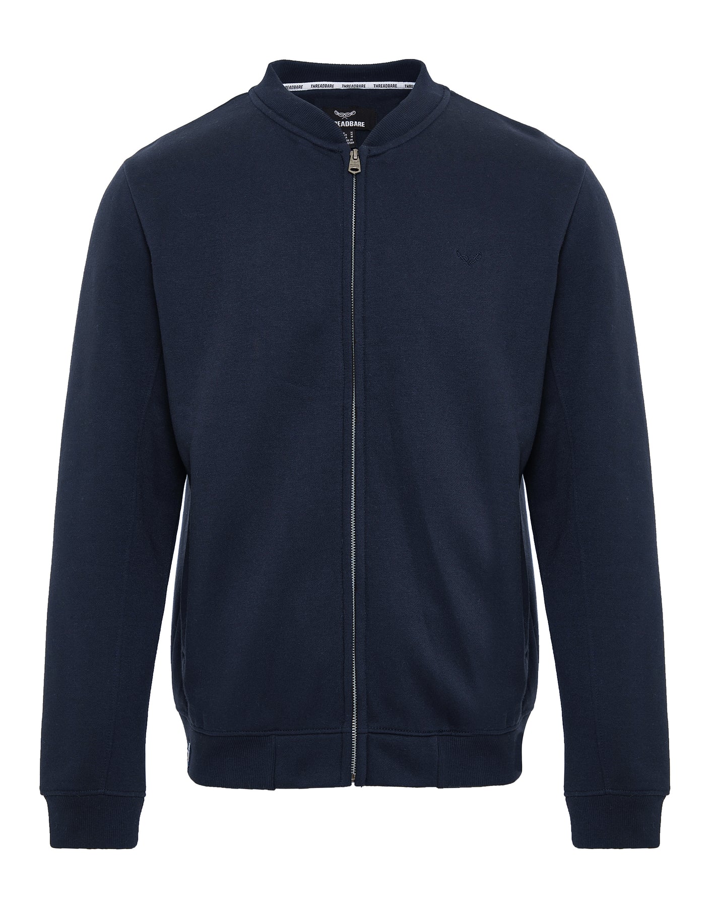 With our signature Threadbare embroidery to the chest, ribbed collar, cuffs and hem with stripe tipping detail, this fleece-lined jacket is a casual upgrade of the traditional bomber style. The dropped shoulder and easy fit make it a great layer to add effortless cool to any outfit.