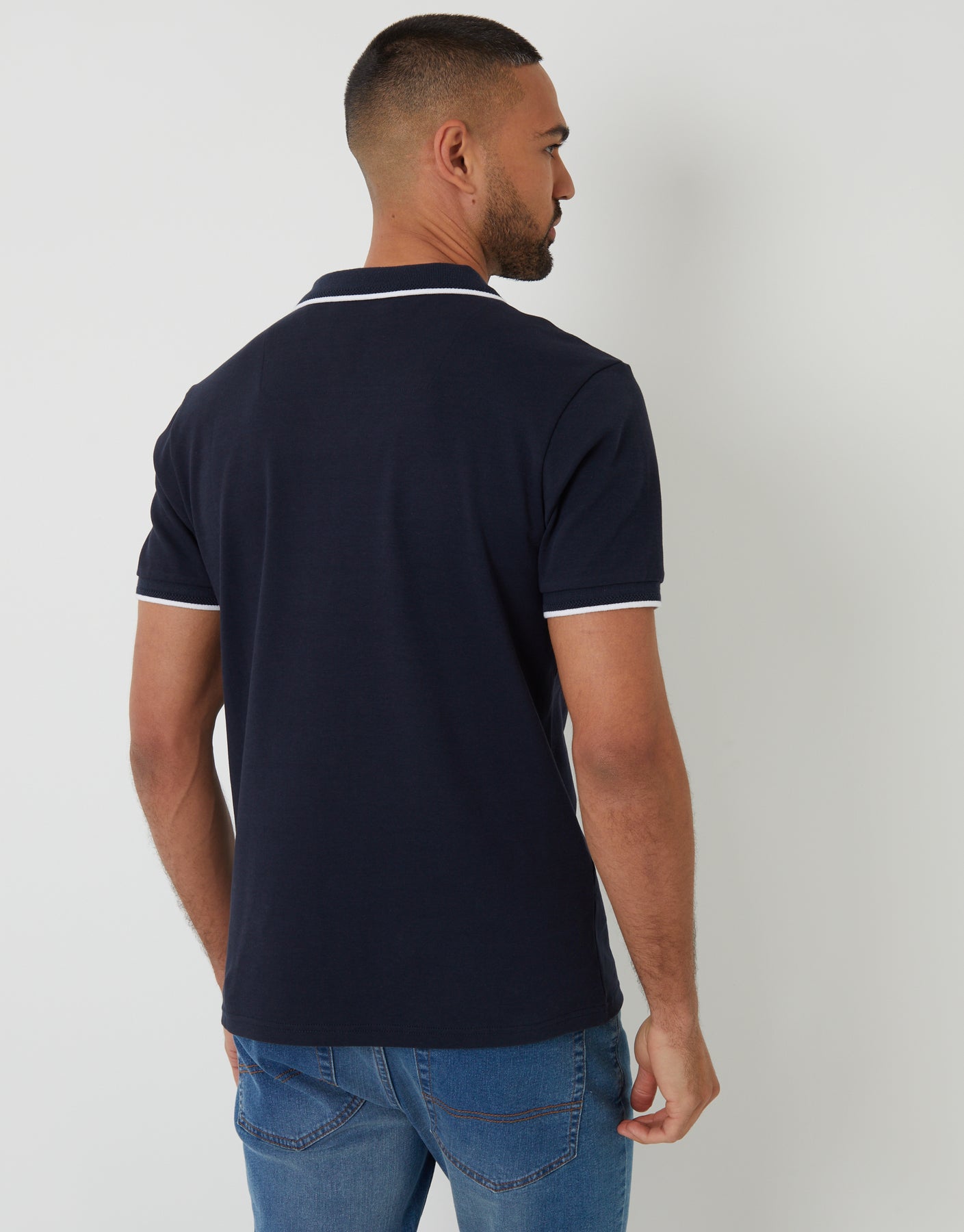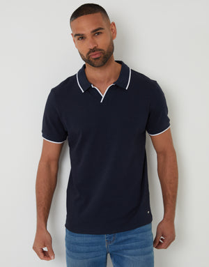 Navy Cotton Interlock Trophy Neck Polo Shirt