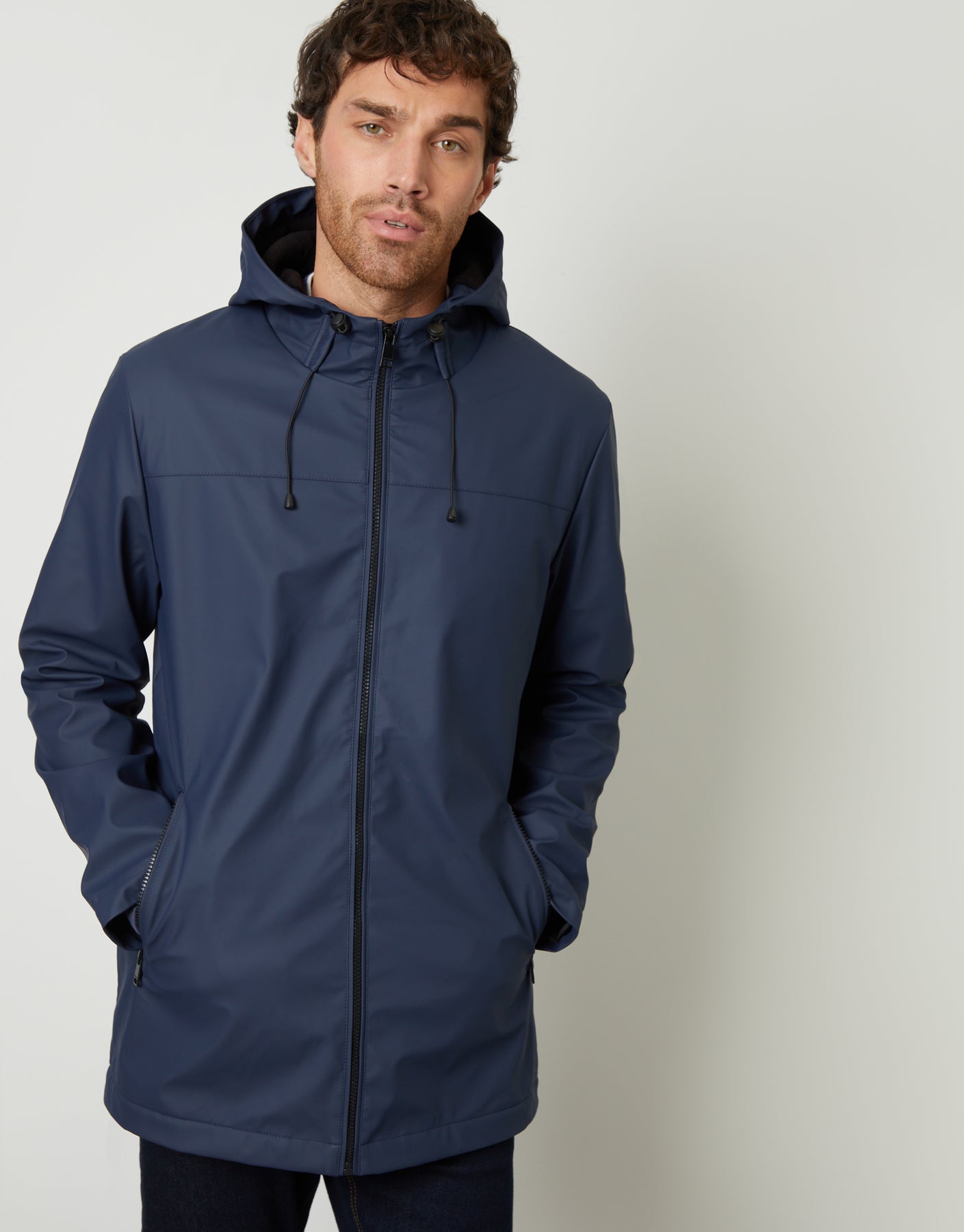 Navy Microfleece Lined Hooded Rubberised Raincoat