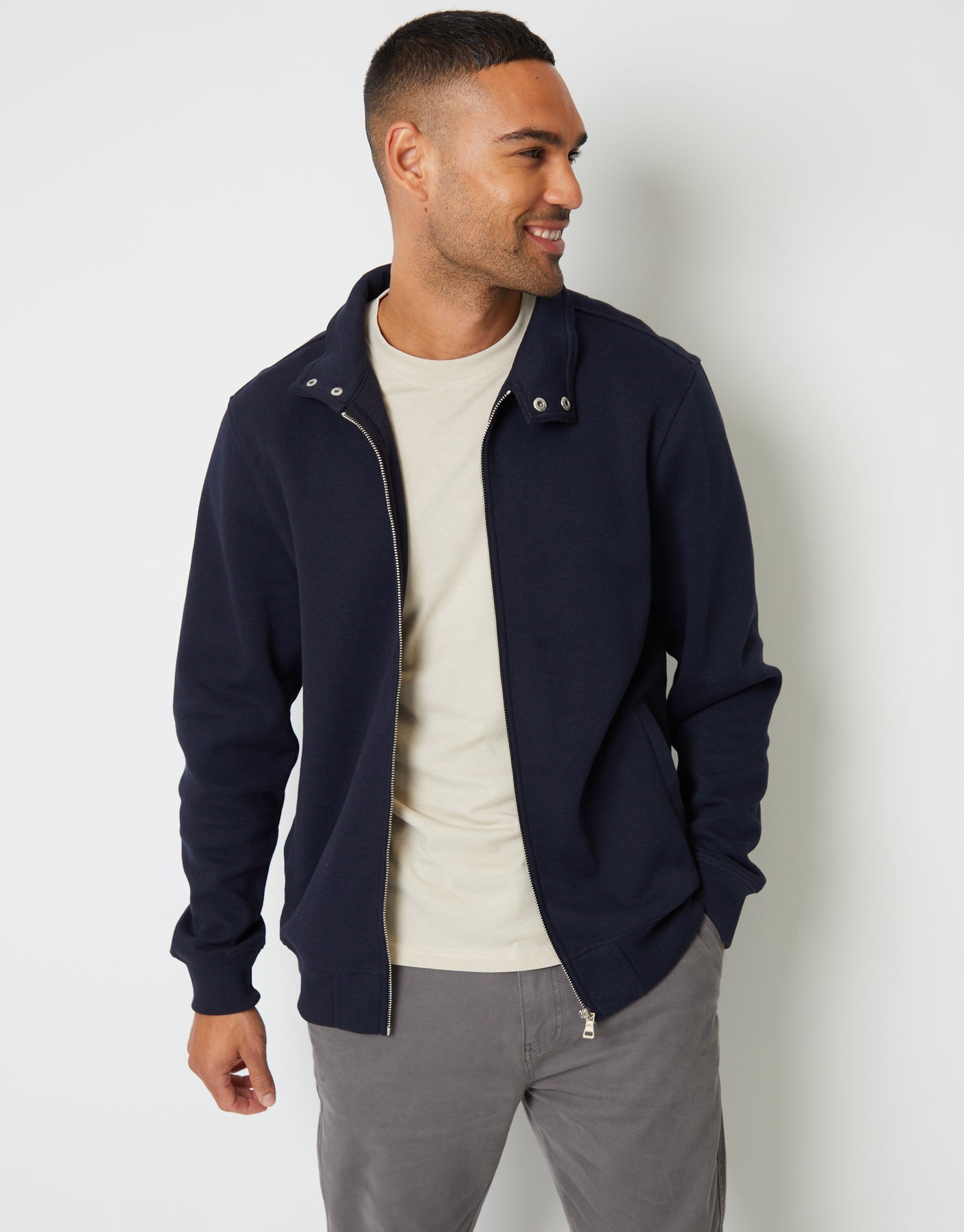 Navy Pique Zip Up Popper Collar Sweatshirt