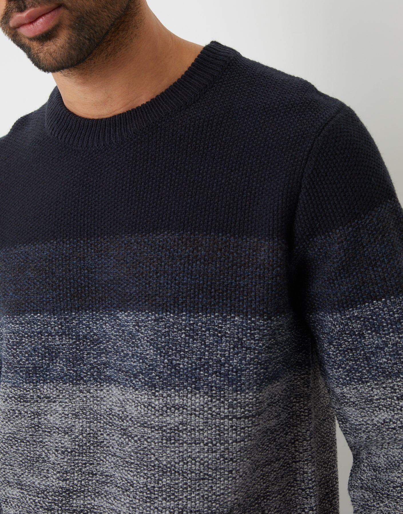 Refresh your winter essentials in this ombré striped knitted jumper.