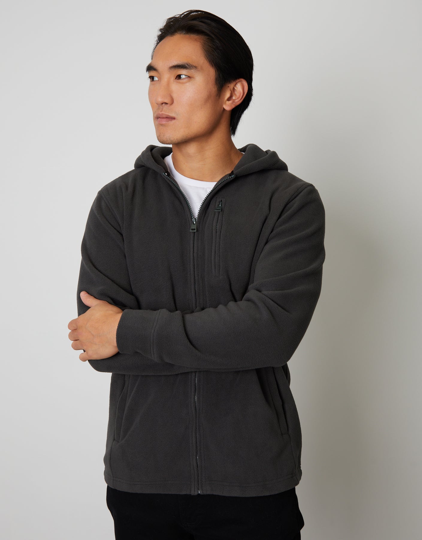 With long cuffed sleeves, hood and cut in a regular fit, our fleece locks in warmth for those cooler days and also features a handy zip-up chest pocket as well as two side pockets. Made from microfleece, this fleece hoodie is a great option for wearing under one of our winter coats to brace the cold in style.