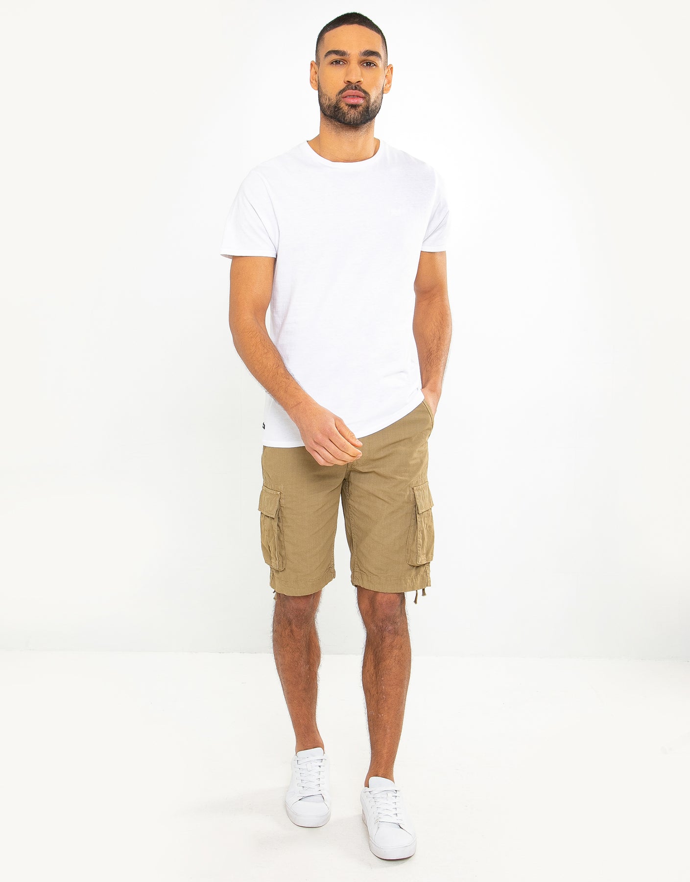 These regular fit, cargo style shorts feature a stylish drawcord hem along with a belt looped waistband. Make use of the front and back pockets and the two additional crafted cargo pockets.