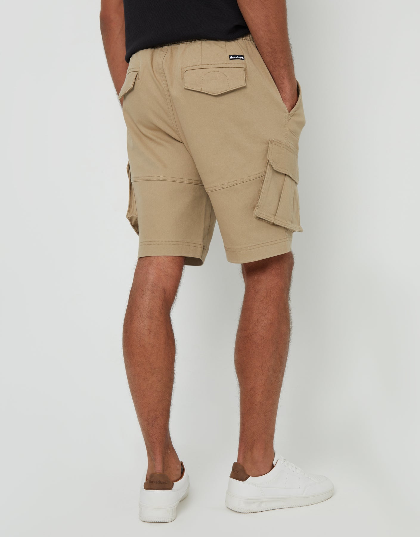 These regular fit shorts are made from a stretch dobby fabric and feature a stylish angled seam above the cargo style pockets, zip fly, part elasticated waistband and shoelace drawcords.