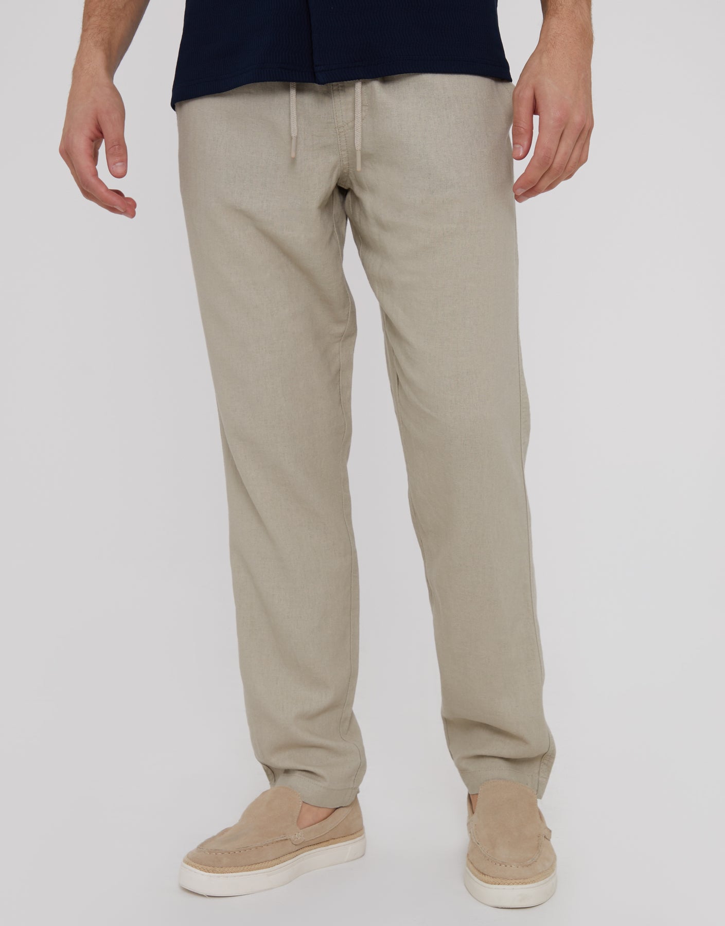 Stone Linen Blend Drawcord Trousers