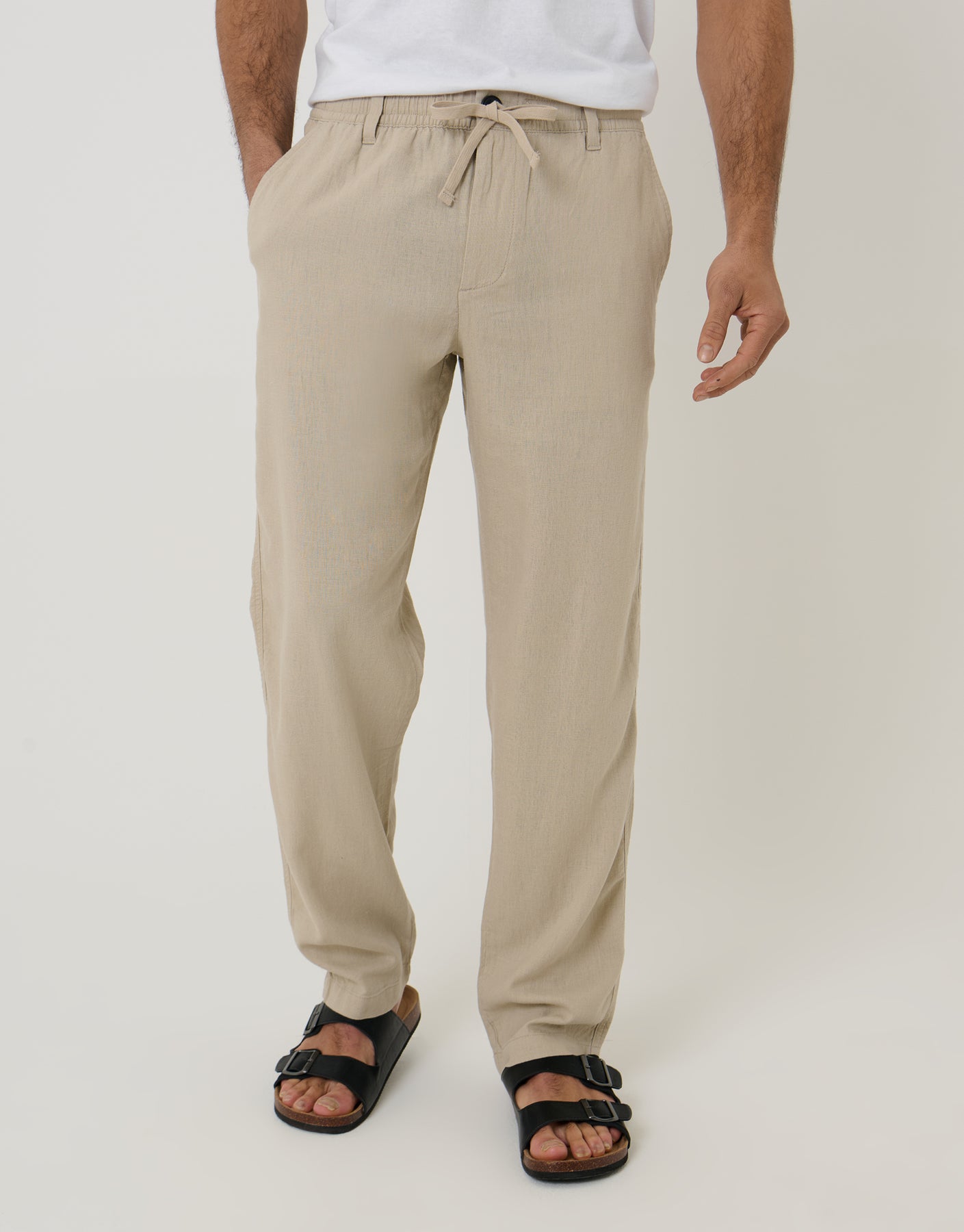 Stone Linen Blend Trousers
