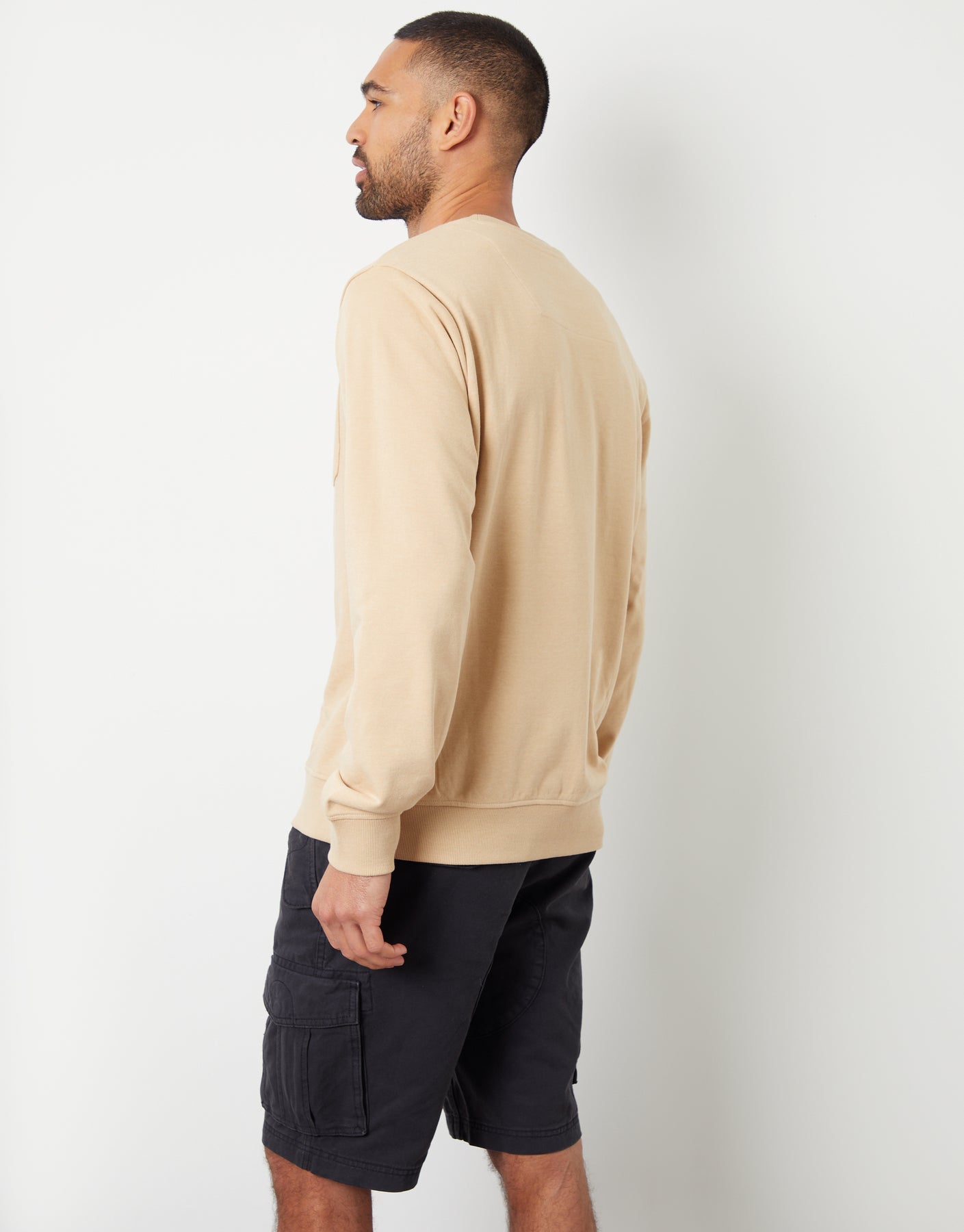Stone Loopback Crew Neck Sweatshirt with Pocket