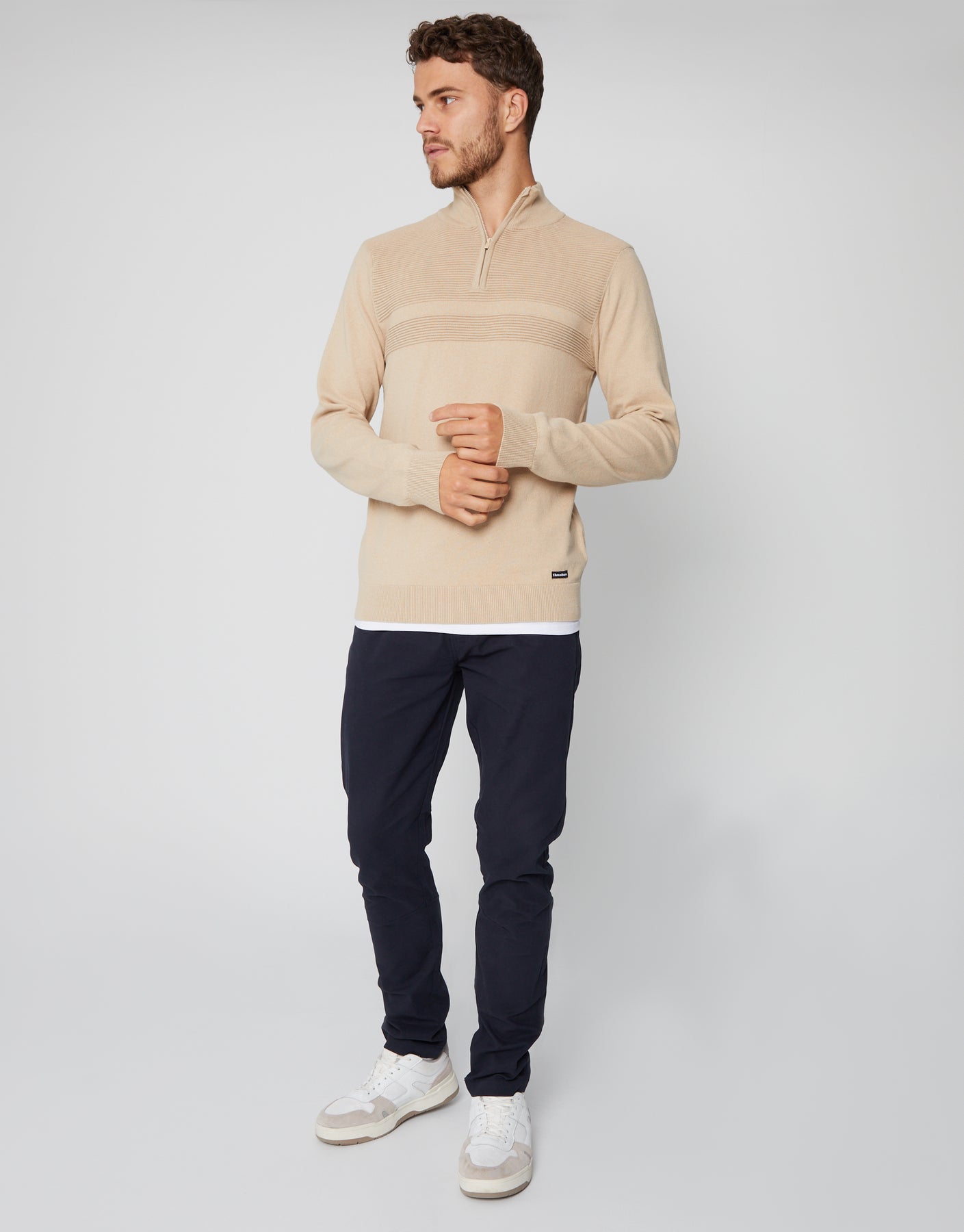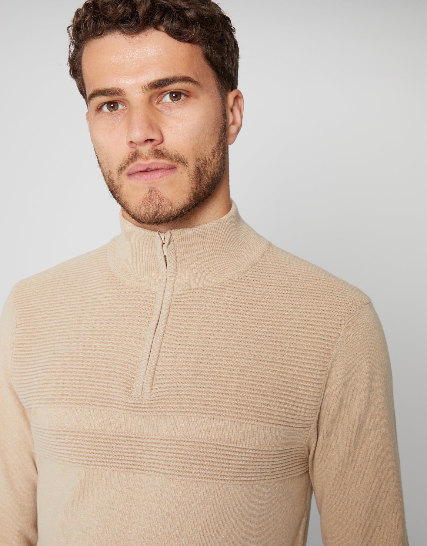 Stone Rib Detail Knitted Quarter Zip Jumper