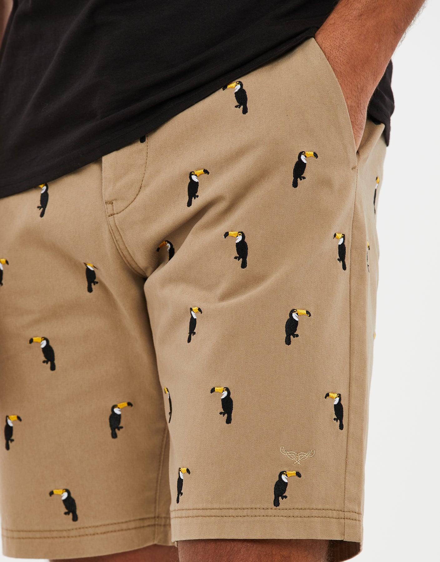 Designed with an all-over embroidered toucan print, guaranteed to add interest to any outfit.