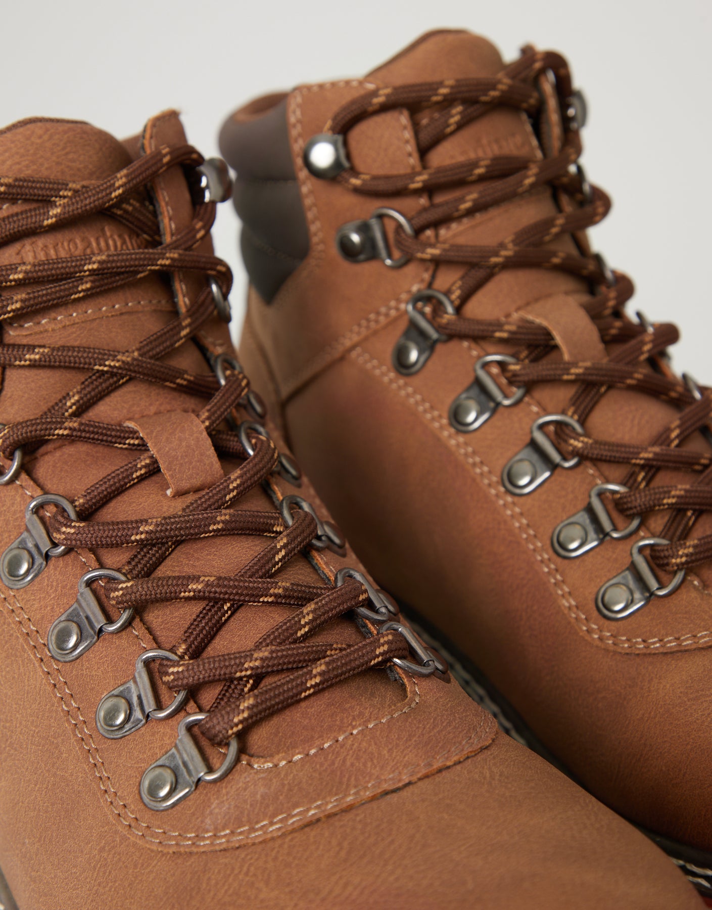 Merging style and function effortlessly, these worker style boots are made from a premium feel faux leather, with a durable, thermoplastic ridged sole that's practical for all your plans. Tonal detailing and stitching gives them a stylish finish, while two tone laces and metallic eyelets offer a secure fit.