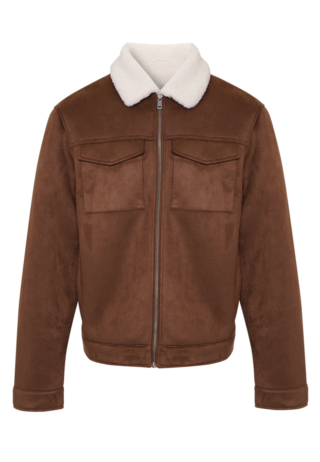 Taupe Faux Suede Borg Lined Aviator Jacket