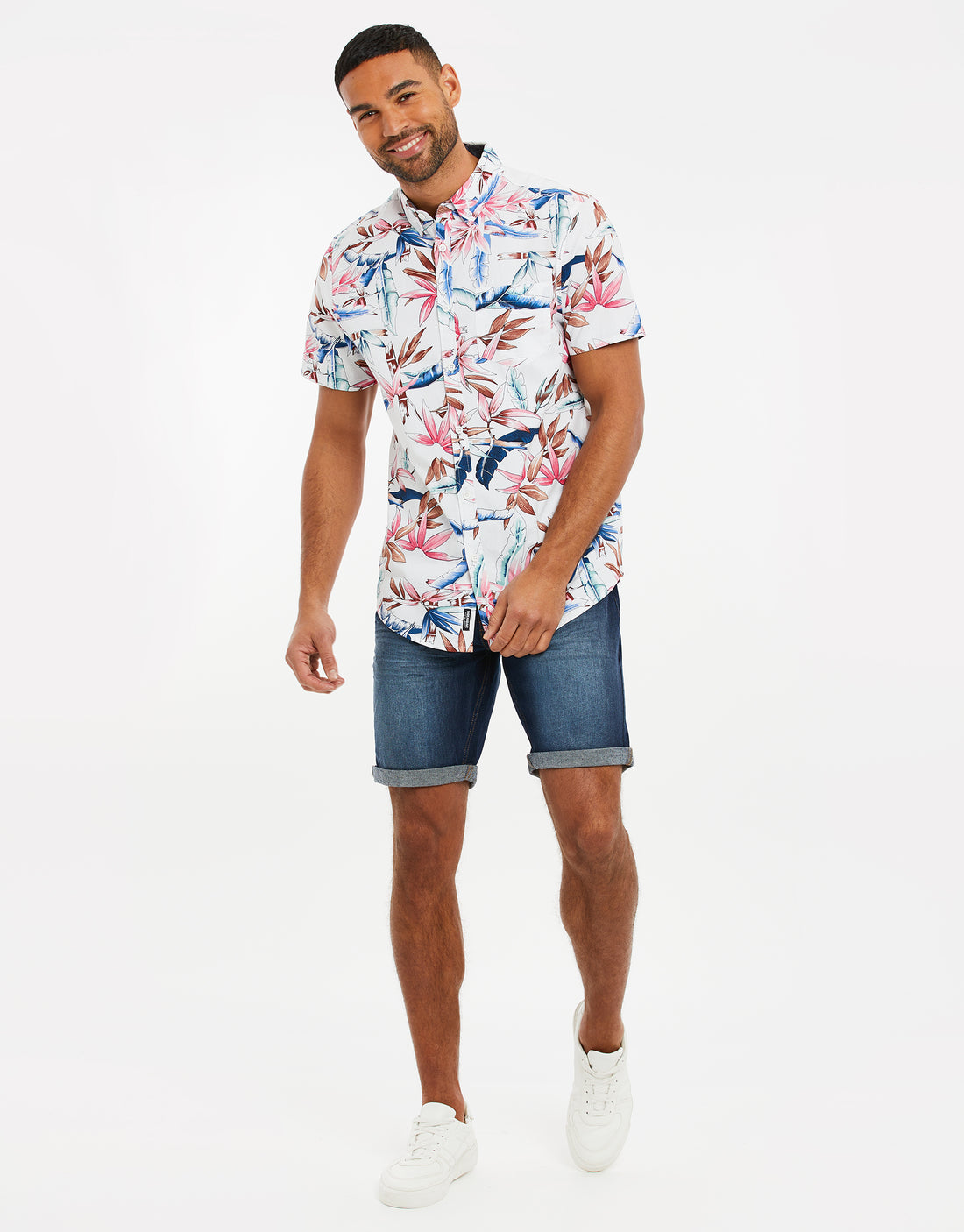 In a classic short sleeve design, it's finished with a stylish button up collar and button down fastening.