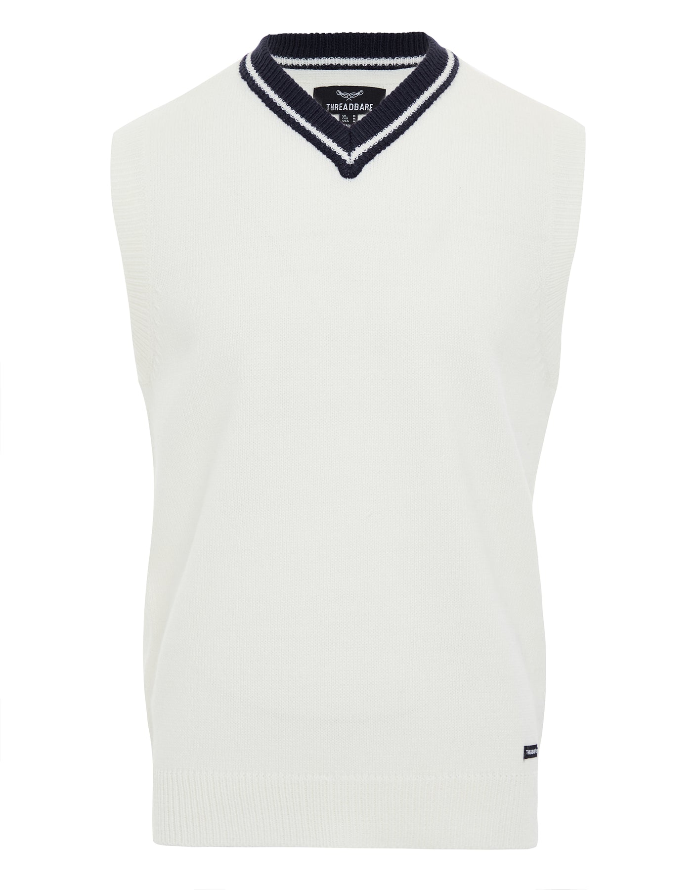 Cut in a regular fit, this knitted sweater vest has a relaxed feel and can be layered or worn on its own. Designed with a contrast v neck with tipping, and ribbed hem for a classic yet sporty feel. Finished with our woven Threadbare label above the hem for sought-after brand recognition.