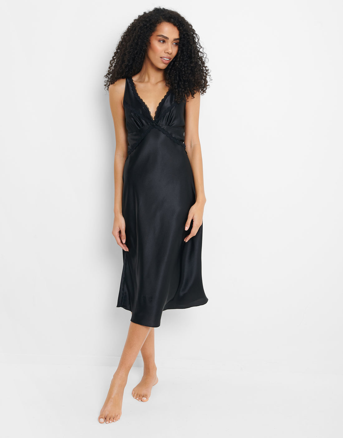 Sleep in comfort and style in our Threadbare satin night dress in a midnight black.