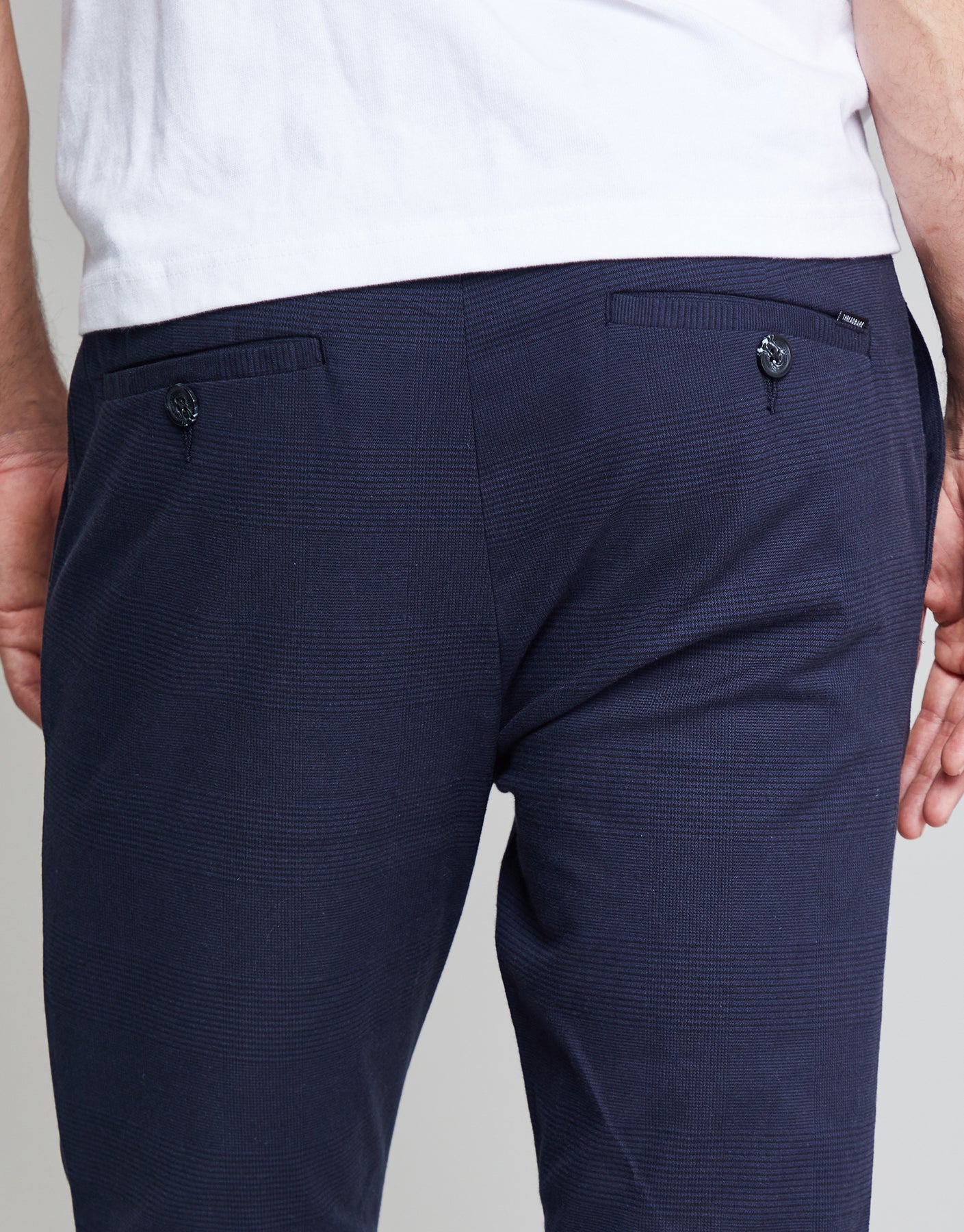 Threadbare Luxe Men's Navy Check Stretch Chino Trousers