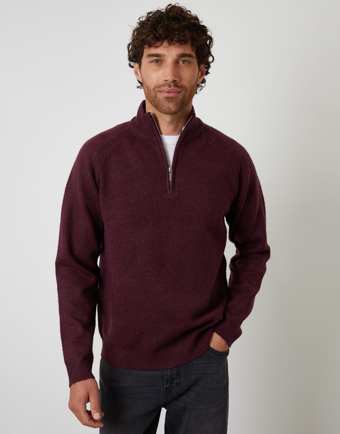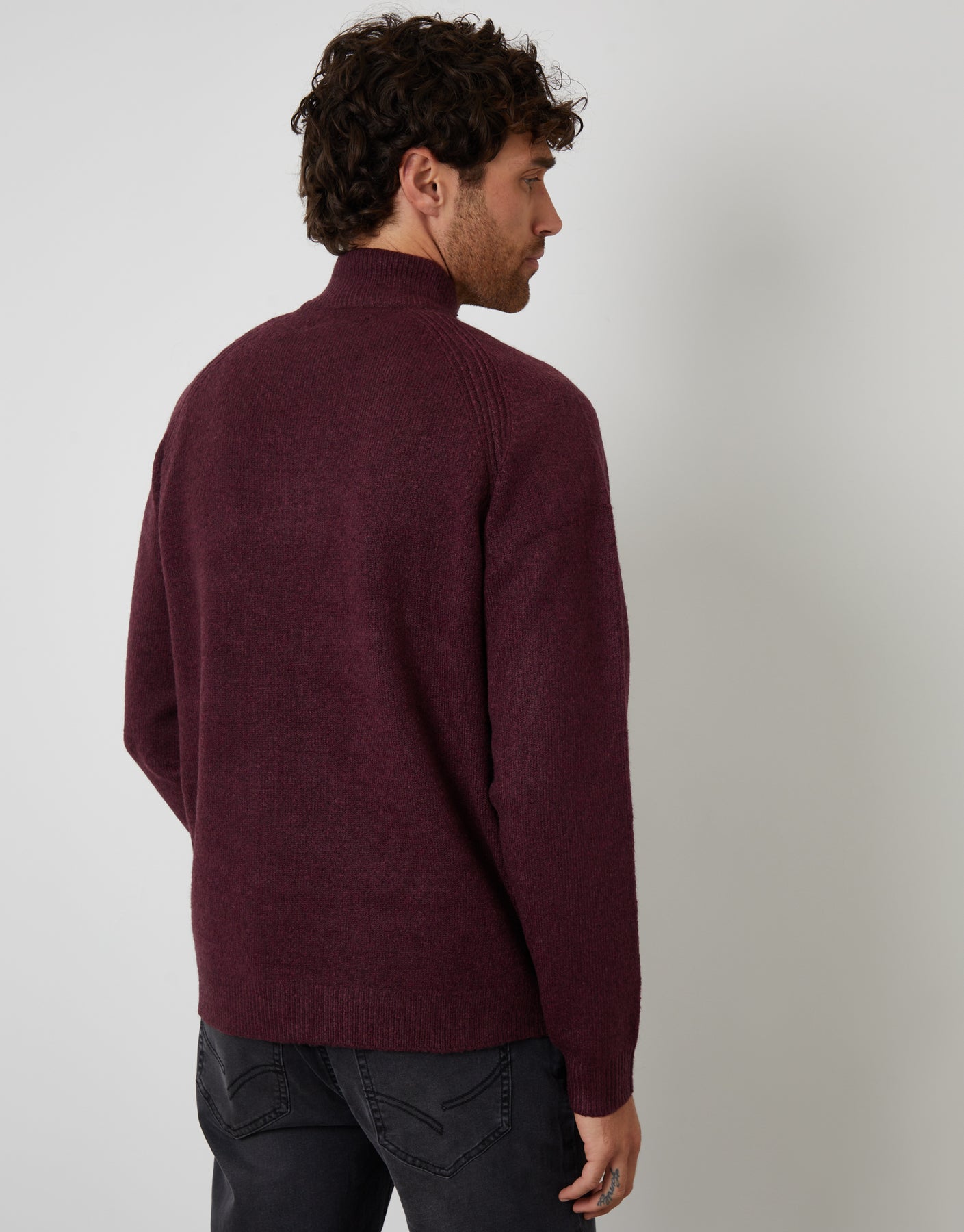 Berry Red Raglan Rib Quarter Zip Knitted Jumper